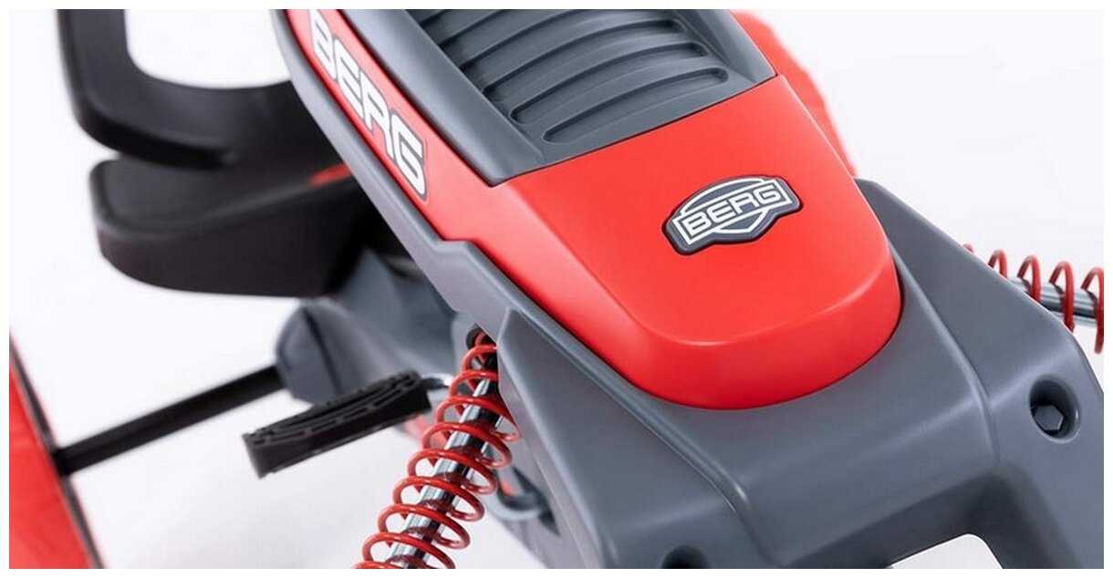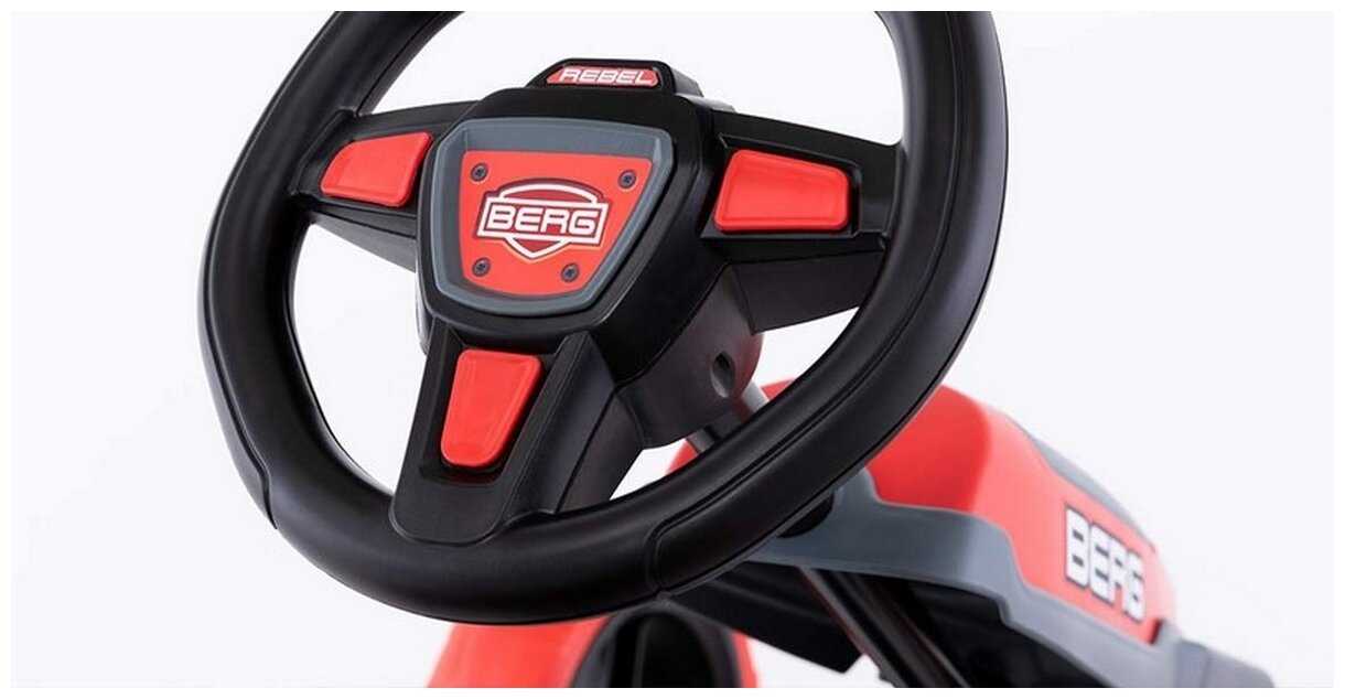 - + Берг Рэппи Ребель нам сразу понравился, как только мы его на сайте увидели. И вид спортивный, и клаксон у него есть!!! Далеко не у каждого бергомобиля есть звуковой сигнал, но тут очень приятное исключение! Сиденье, как и у всех бергов, регулируется...
