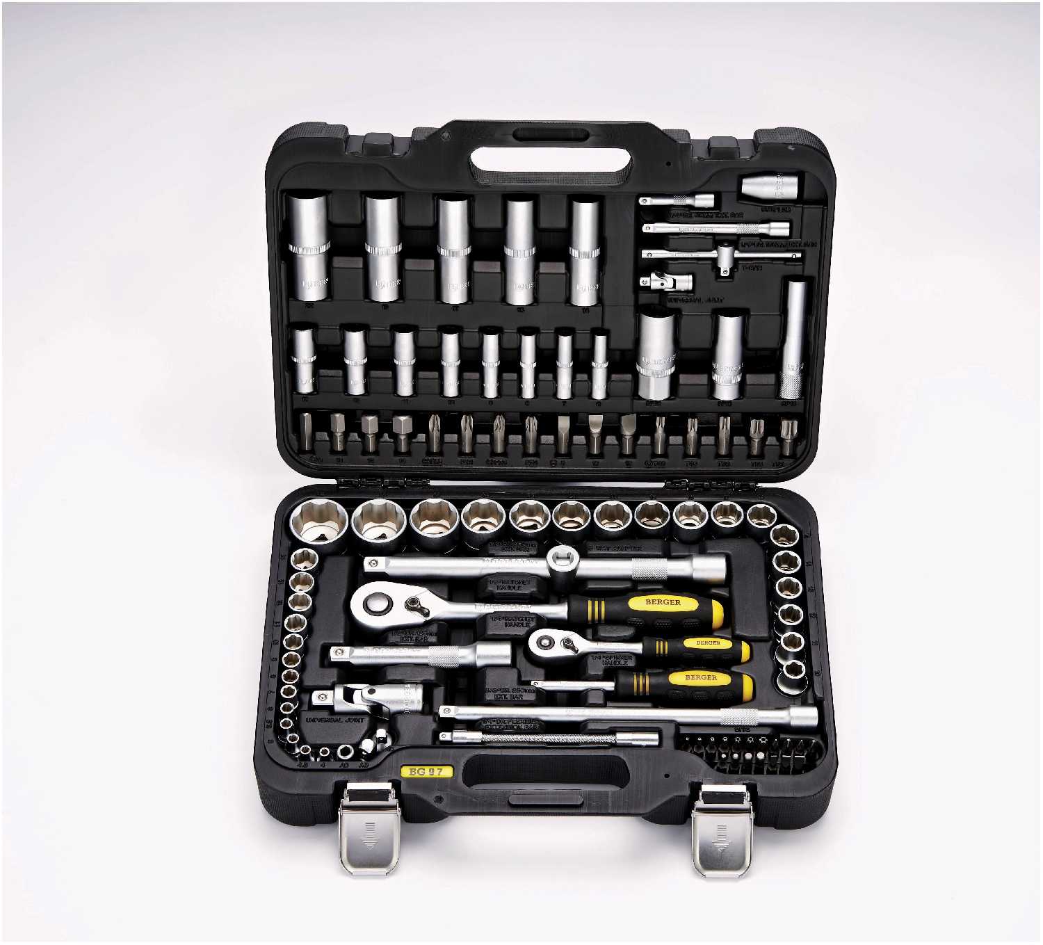 | Головки торцевые подробно : | 1/4" (Super Lock): 4 4.5 5 5.5 6 7 8 9 10 11 12 13 14 мм, длинные 1/4" (Super Lock): 6 7 8 9 10 11 12 13 мм, гибкий удлинитель 1/4": 150 мм, удлинитель 1/4": 50 100 мм, трещотка 1/4": 45 зубов, карданный шарнир 1/4", вороток т-образный 1/4": 110 мм, 1/2" (Super Lock): 10 11 12 13 14 15 16 17 18 19 20 21 22 24 27 30 32 мм, длинные 1/2" (Super Lock): 14 15 17 19 22 мм, свечные 1/2": 16 21 мм, трещотка 1/2": 45 зубов, удлинитель 1/2": 125 250 мм, карданный шарнир 1/2", свечная 3/8" (12-гр): 14 мм, удлинитель 3/8": 250 мм |