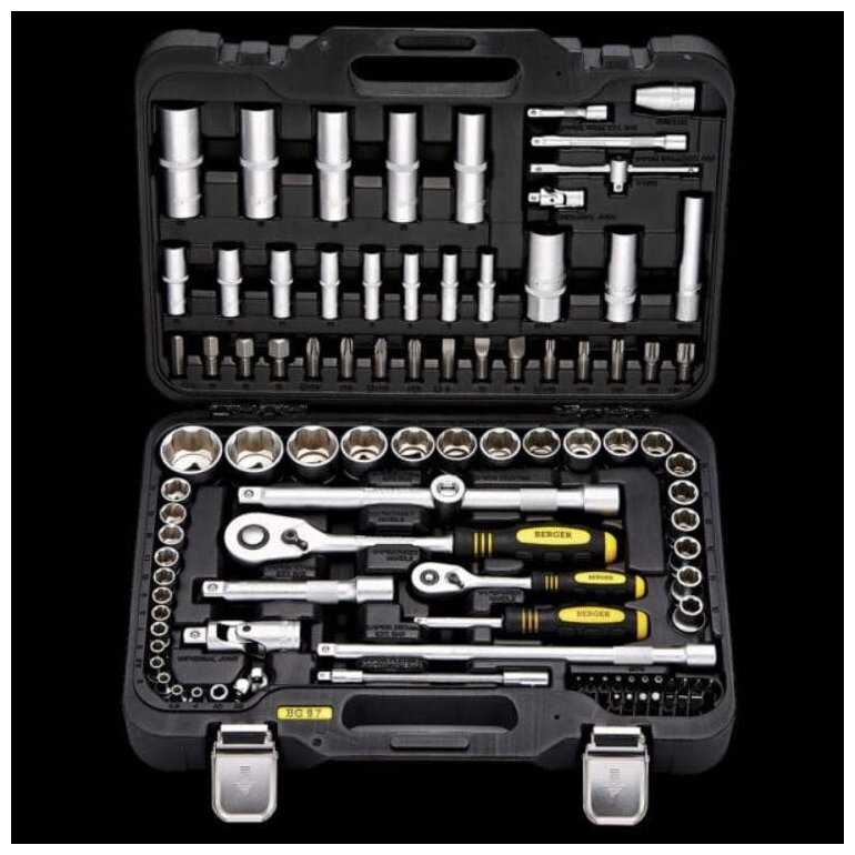 - + Отличный набор инструментов. Есть всё необходимое, для ремонта автомобиля, качество стали хорошее.