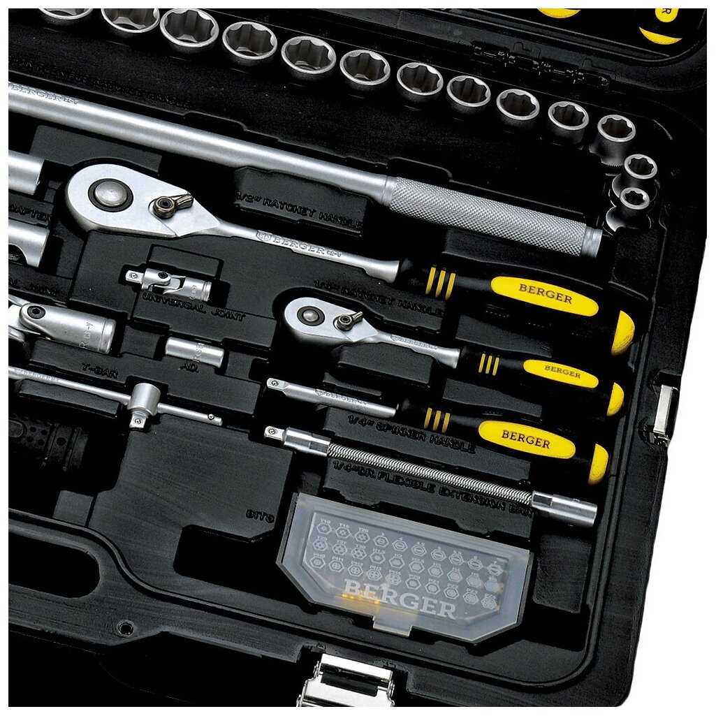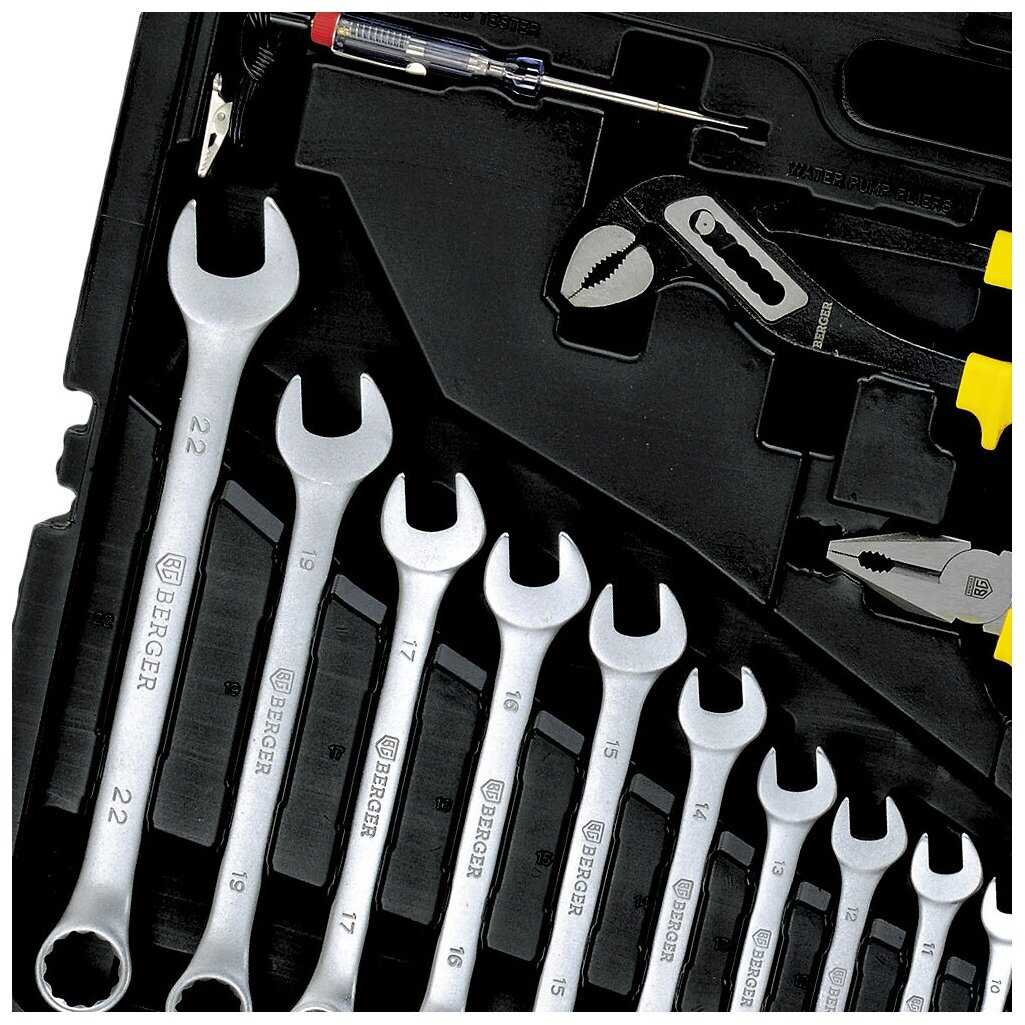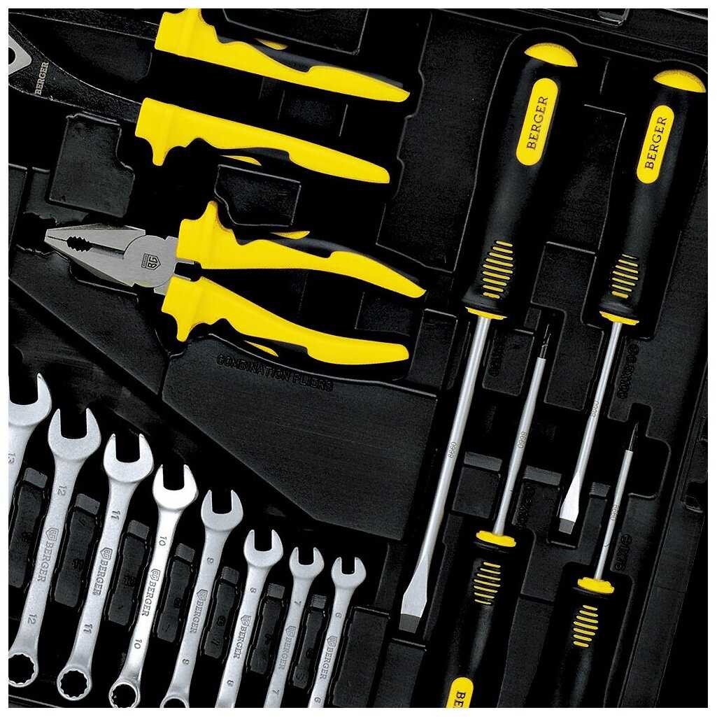 Инструменты в комплекте : | вороток для головок, длинногубцы, клещи, клещи переставные, ключ переставной гаечный, ключ разводной, ключи гаечные, ключи имбусовые (шестигранные), ключи торцевые, круглогубцы, молоток, отвёртки, отвёртки для точных работ, пассатижи, плоскогубцы, рукоять для бит, тонкогубцы, трещотка |