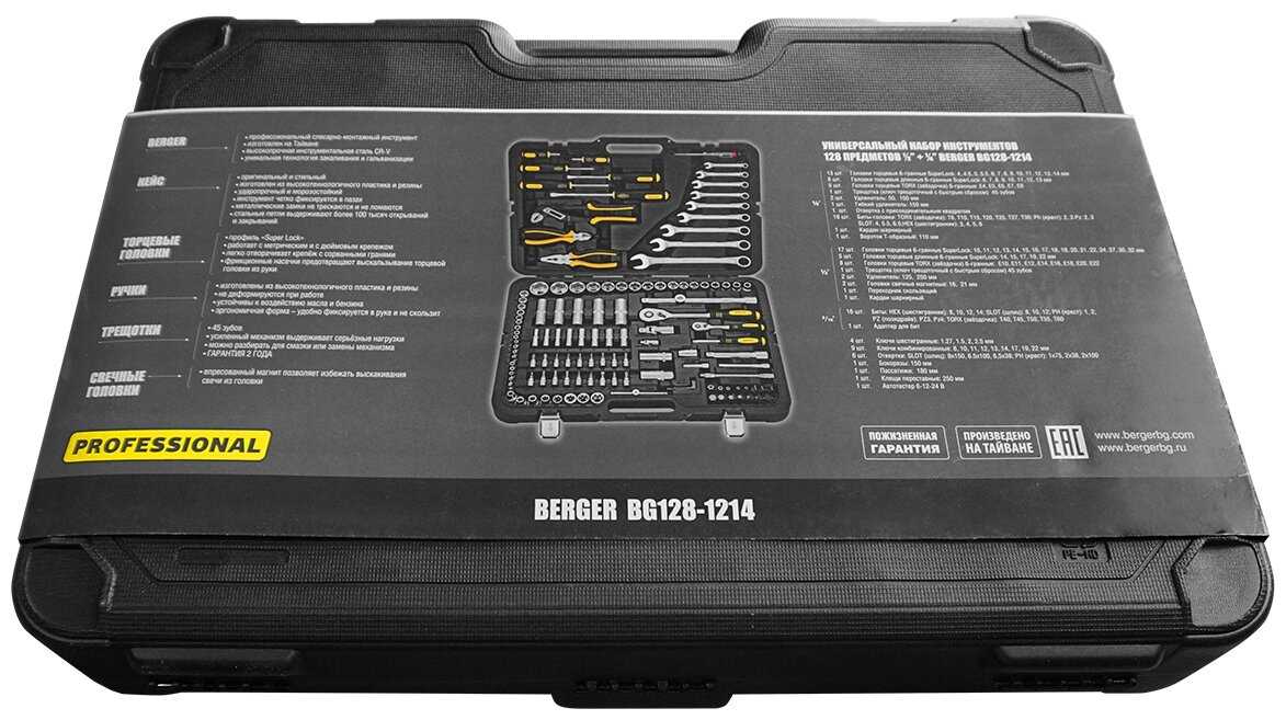 | Инструменты в комплекте : | бокорезы, вороток для головок, клещи, клещи переставные, ключ переставной гаечный, ключ разводной, ключи гаечные, ключи имбусовые (шестигранные), ключи торцевые, круглогубцы, кусачки, молоток, отвёртки, отвёртки для точных работ, пассатижи, плоскогубцы, рукоять для бит, рукоять для головок, трещотка |