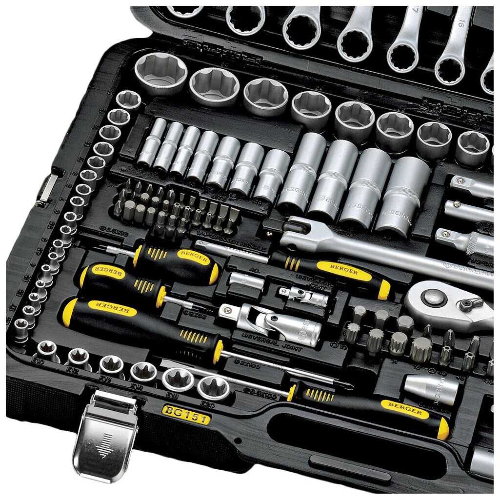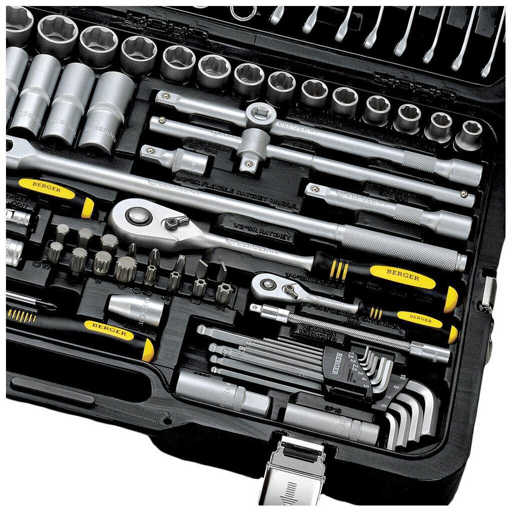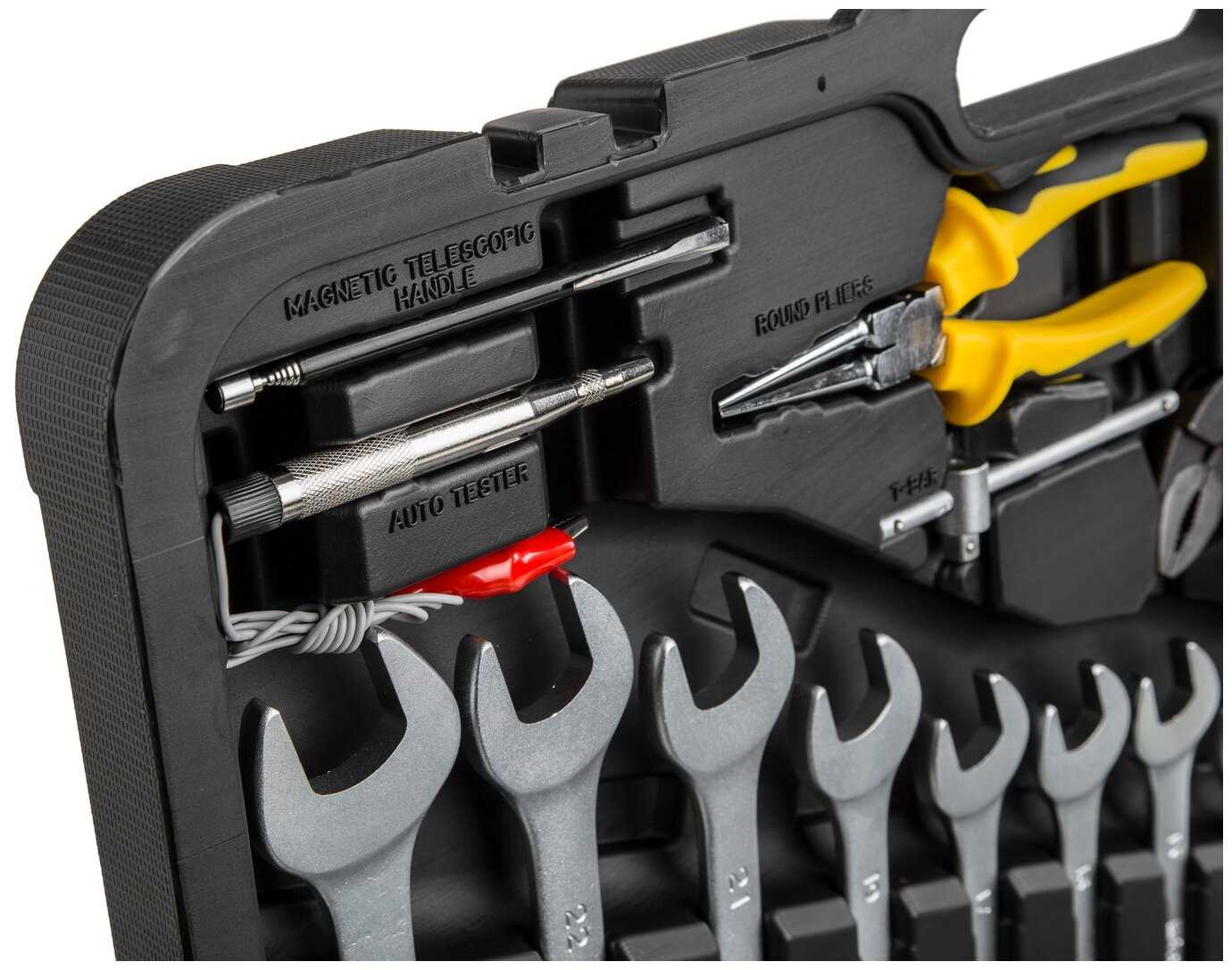 Отличный инструмент. Читал много отзывов перед покупкой данного инструмента, были как + так и - . В итоге решился купить данный набор и ни разу не пожалел. В нем есть абсолютно все, что нужно. Каждый раз когда еду в гараж беру с собой. Откручивал ступичную гайку, кто хотя бы раз ее откручивал, знает что не просто это сделать. Вставал на ключ всем своим весом 90 кг, думал, что головка не выдержит, однако обошлось без потерь. Хочу сказать этим, что метал добротный, хоть сделан набор в Китае.