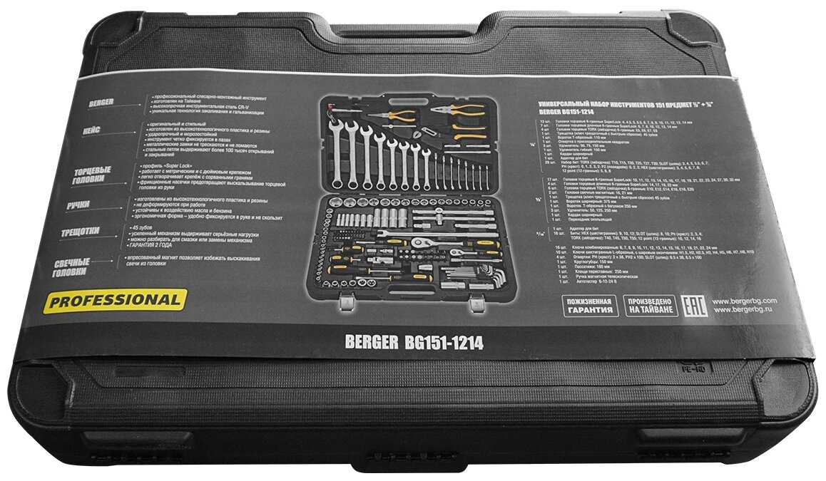- + Хороший набор, почти все что нужно всегда находится в этом наборе. Брал для автосервиса. Чемодан крепкий. 4 Замка.