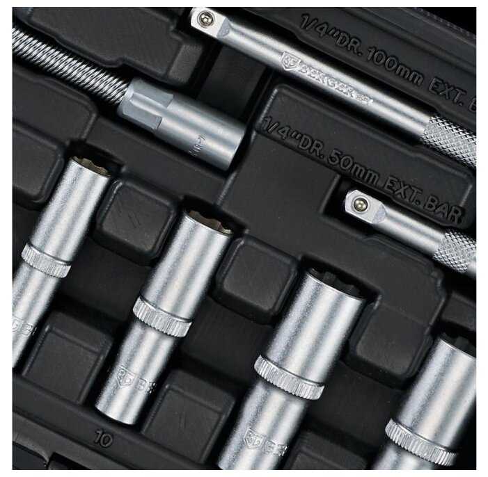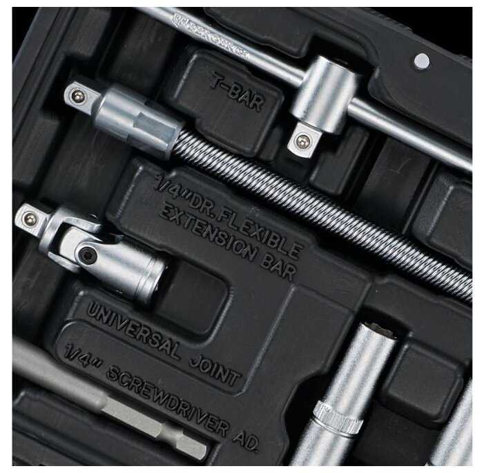 Аксессуары в комплекте : | гибкий удлинитель для бит, держатель для бит, переходник для головок, удлинитель для бит, удлинитель для головок, шарнир карданный для головок |