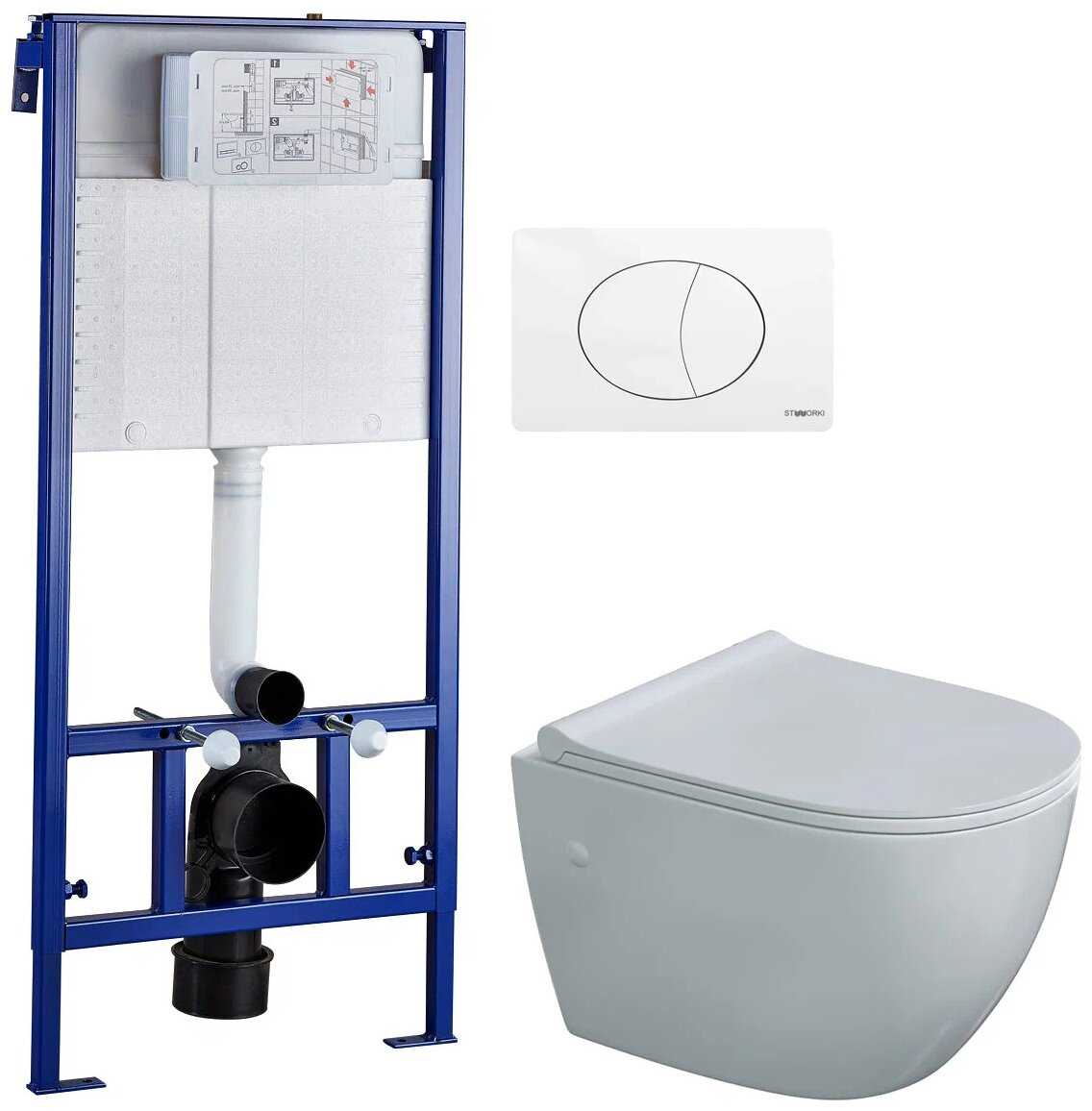 Отзывы о Комплект BERGES WASSERHAUS Унитаз подвесной Berges Wasserhaus Okus (082127) с микролифтом + Система инсталляции STWORKI (510162) + кнопка смыва с горизонтальным выпуском