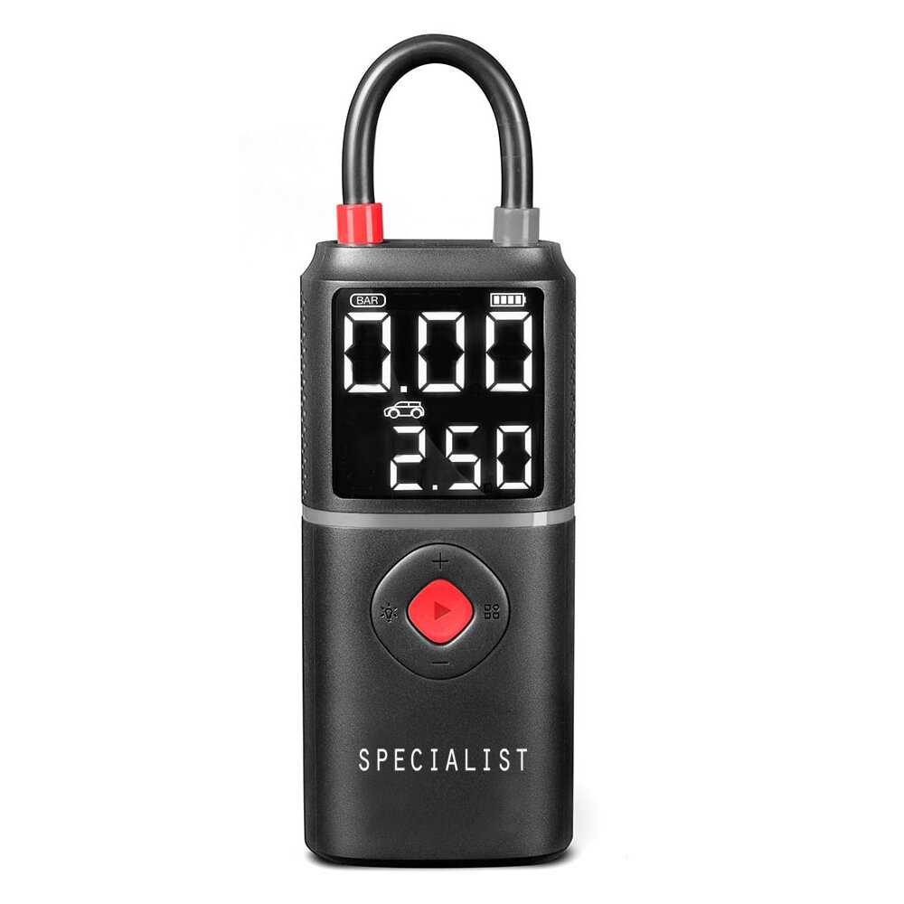 - + Очень удобная вещь. Подкачивать можно даже колеса большие. Плюс электронная система, позволяет установить необходимое давление.