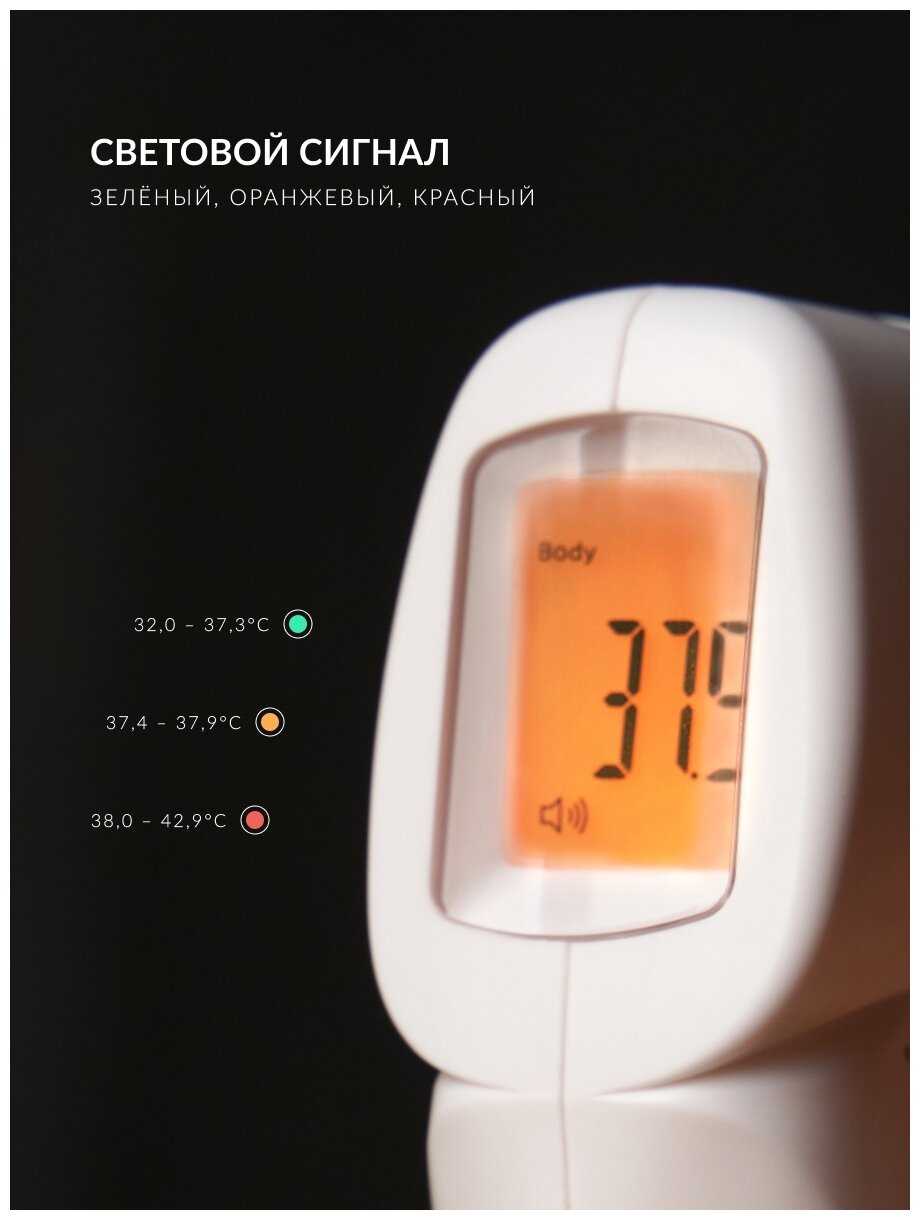 - Режим тела (32–42.9°C) подходит для контроля лихорадки, воздуха (0–40°C) — для помещения, поверхности (0–60°C) — например, детского питания.