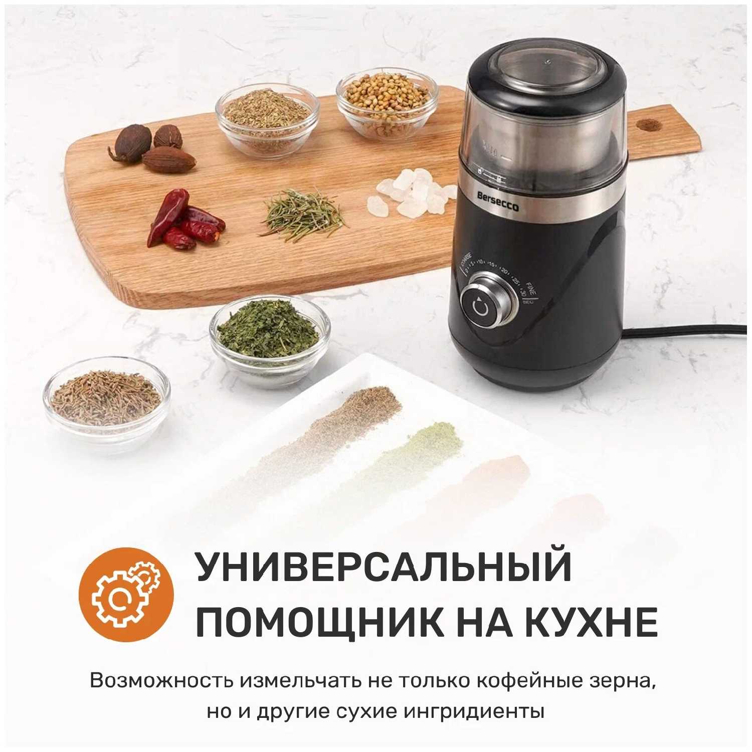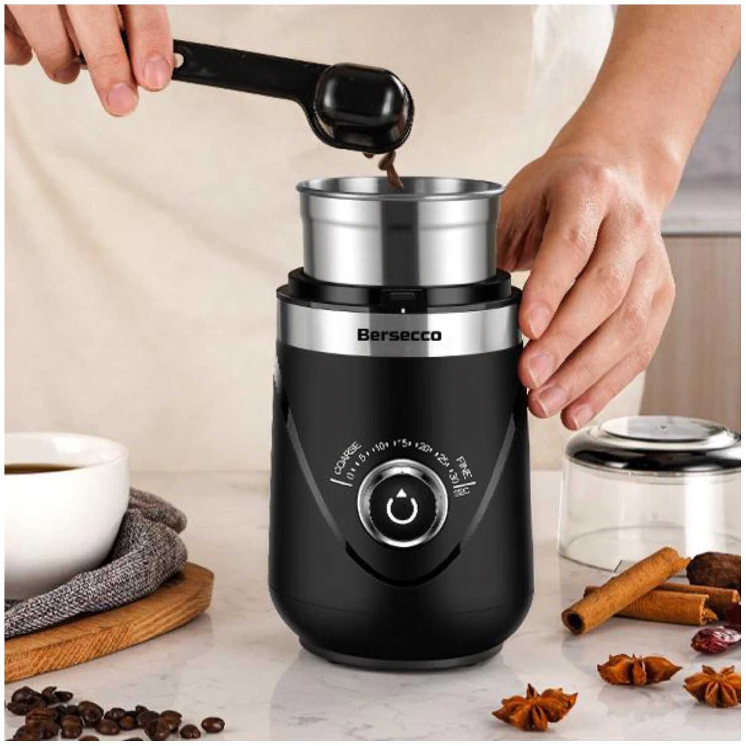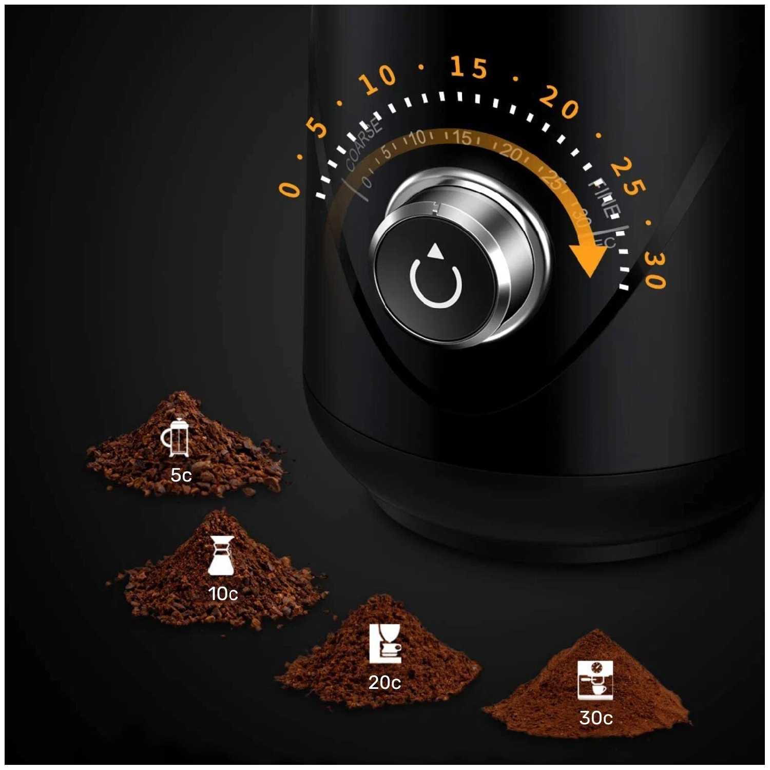 - + Комппактная и производительная кофемолка с возможностью регулировки степени помола. Можно использовать не только для измельчения кофейных зерен, но и например различные специи и т.д.