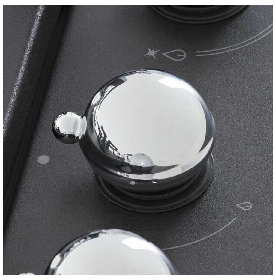 Панель компактная – при этом оснащена пятью конфорками. Удобно, что большую конфорку расположили в центре. Между горелками идеальное расстояние, чтобы можно было готовить в габаритной посуде. Вообще устройство оказалось по всем параметрам качественным и надежным. Немало важно, что у латунных горелок возможна разная мощность. У центральной WOK два ряда пламени, плюс две стандартных, плюс одна быстрая плюс одна вспомогательная. Зажигать пламя благодаря автоматической системе можно одним движением.