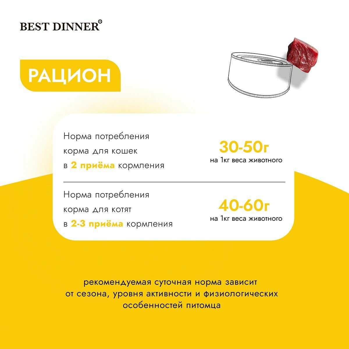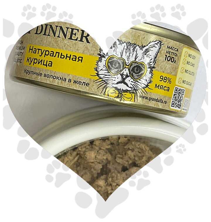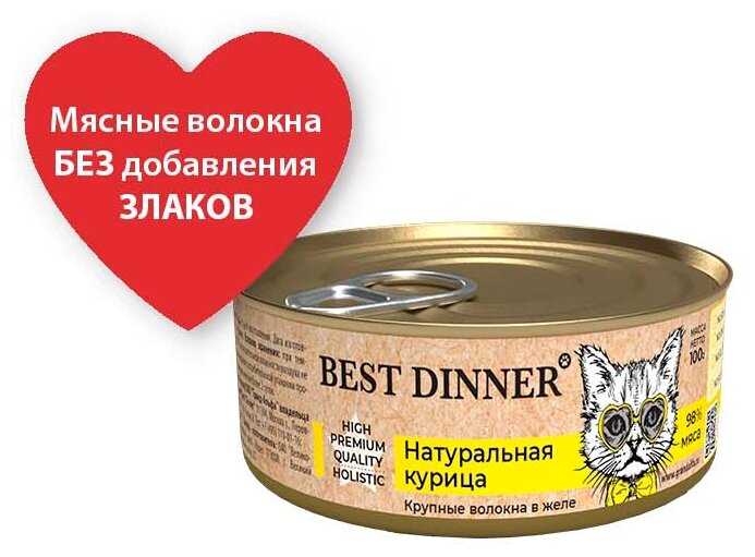 - + Натуральный состав, куриное мясо в небольшом количестве желе: моим двум котам нравится. Цена: по сравнению с другими производителями корм Best Dinner дешевле значительно.
