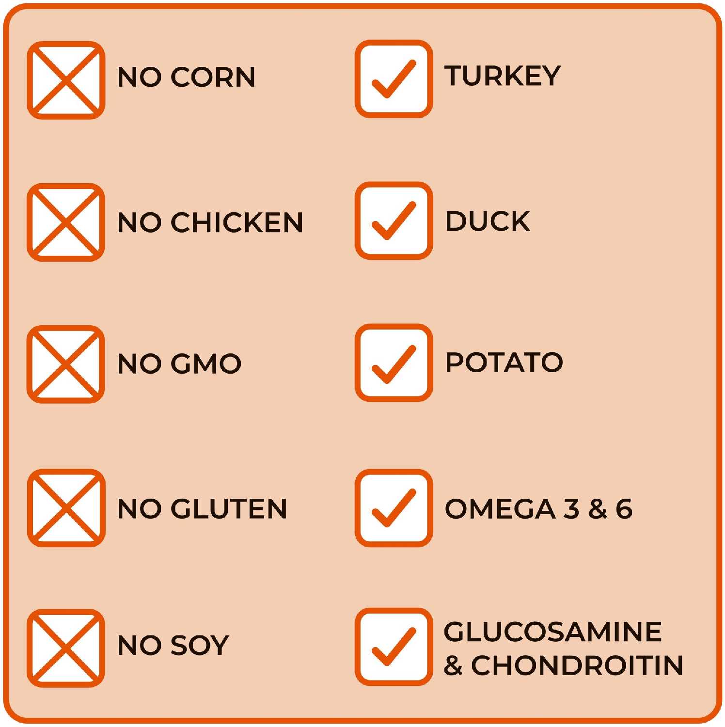 Корм доставлен в срок, хорошо упакован (пакет в коробке.) Брала корм с другим вкусом, с картофелем первый раз . Собака есть с удовольствием, но именно картофель оказалось не подходит моей собаке. Не знала . Сильное газообразование и очень мягкий стул. Но это особенности наверное моей собаки. А так корм неплохой.