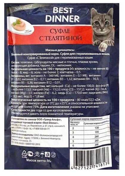 16 отзывов пользователей o Best Dinner Super Premium Sterilised телятина суфле (85г)
