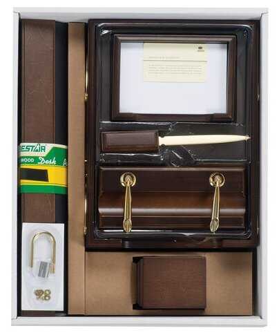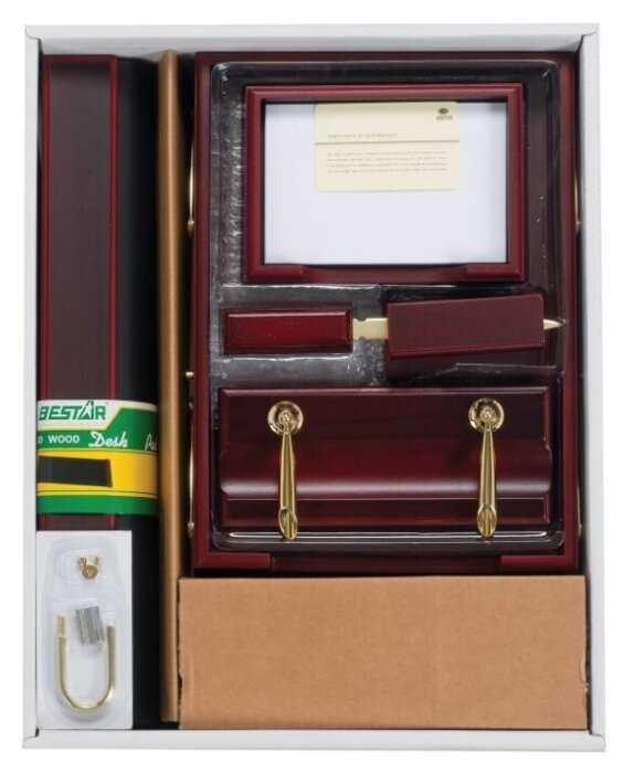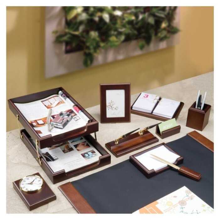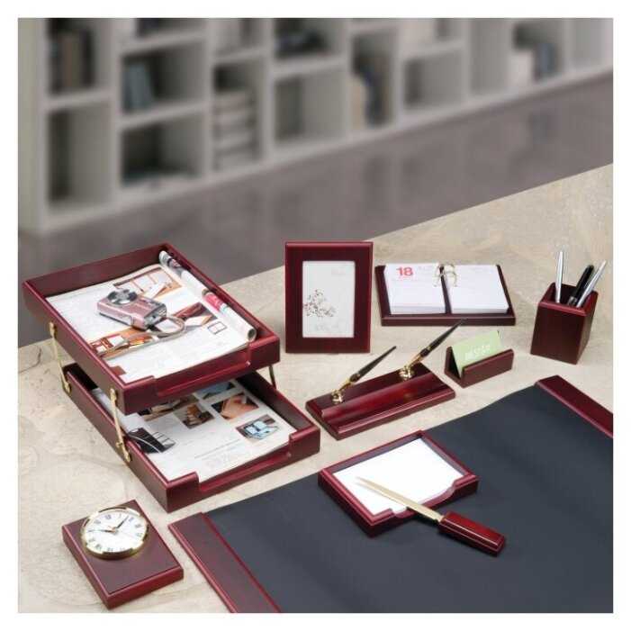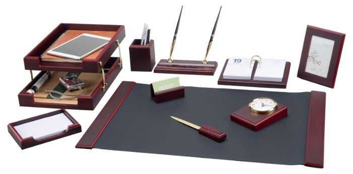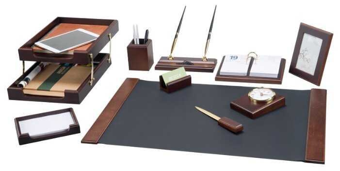В наборе : | нож для писем, ручка, настольная визитница, накладка на стол, часы |