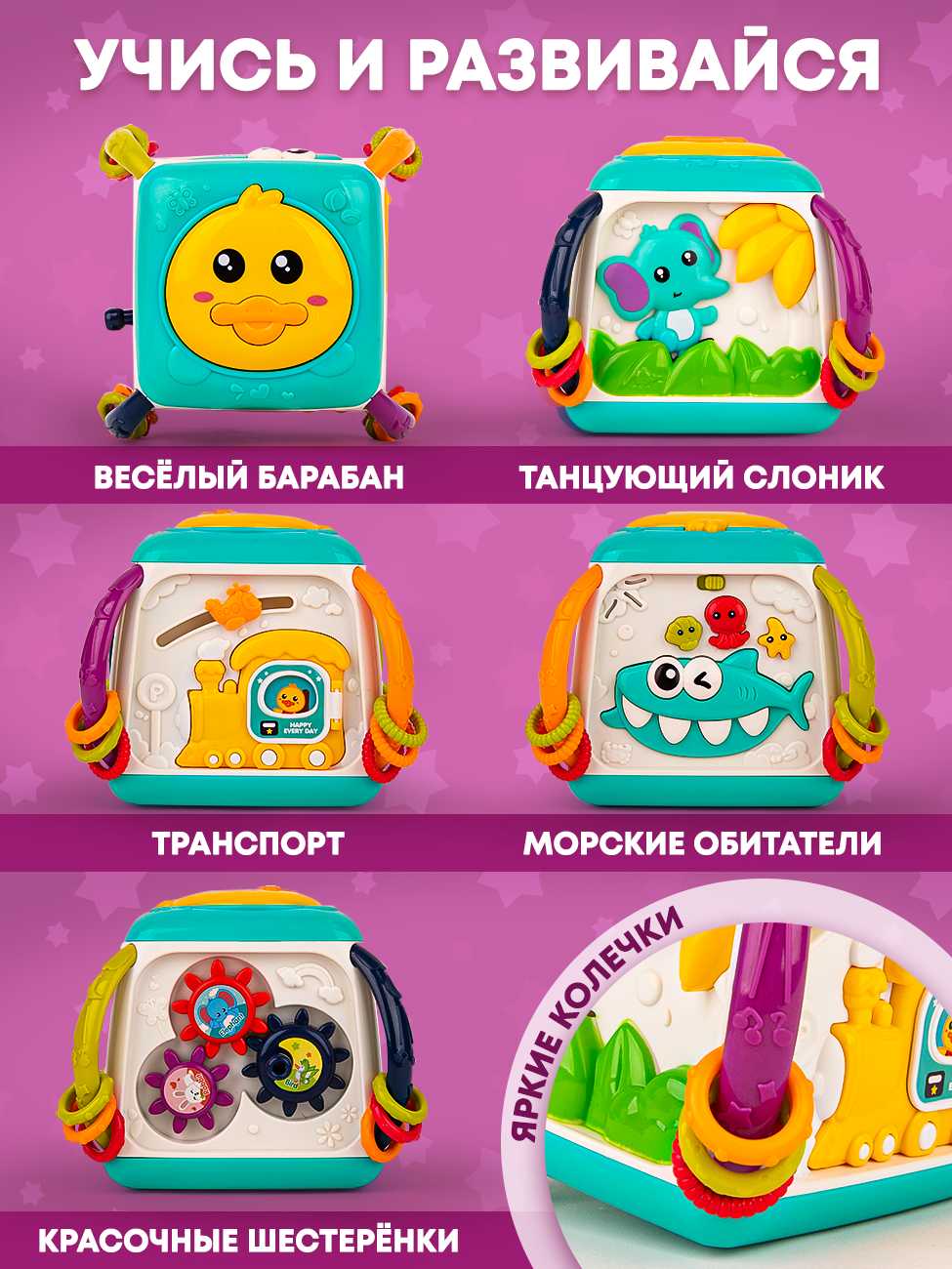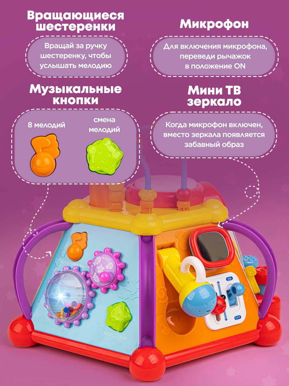 Развивающие функции : | изучение цветов, логика и мышление, моторика и ловкость, музыкальный слух и чувство ритма, творческое мышление, эрудиция |