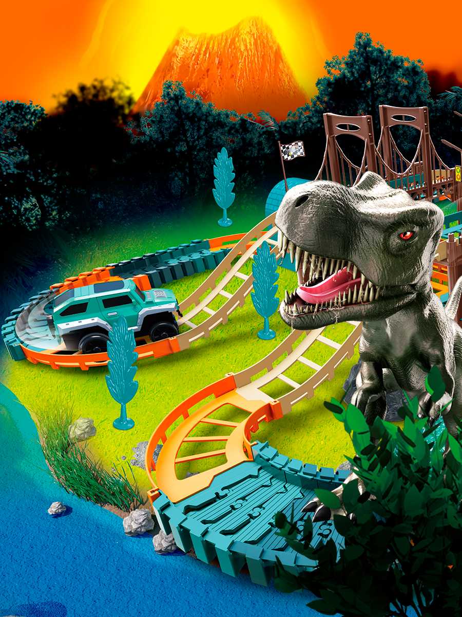 - + хорошая длина трека, корпус дополнительный на машинку,подсветка машинки