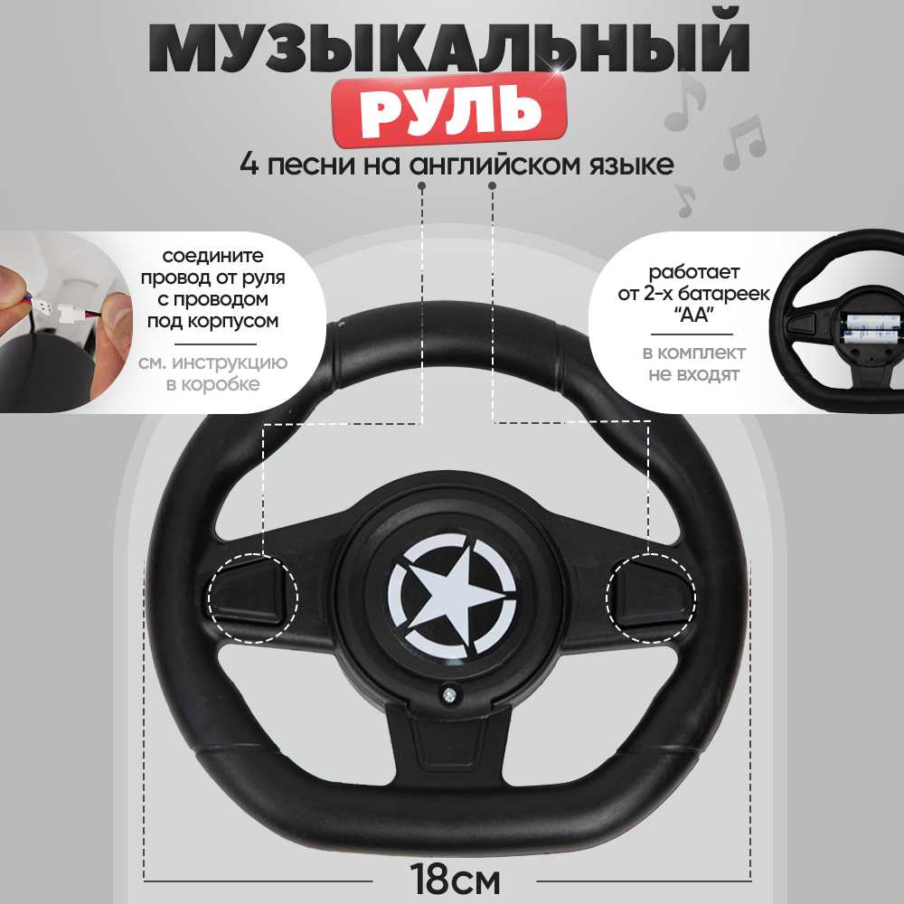 - - очень хлипкая конструкция ,капюшон не крепится от слова совсем не чем просто вставляется в пазы ,ручка для управления машинкой боишься что в руках рассыпется очень уж не надёжно сделано ,и угол поворота совсем очень мал ,а если ребёнок держит руль то вовсе не повернёшь колёса туда куда надо.,фары горят но постоянно вываливается светодиод нужно будет чем-то закреплять чтобы не выпадали музыка играет .