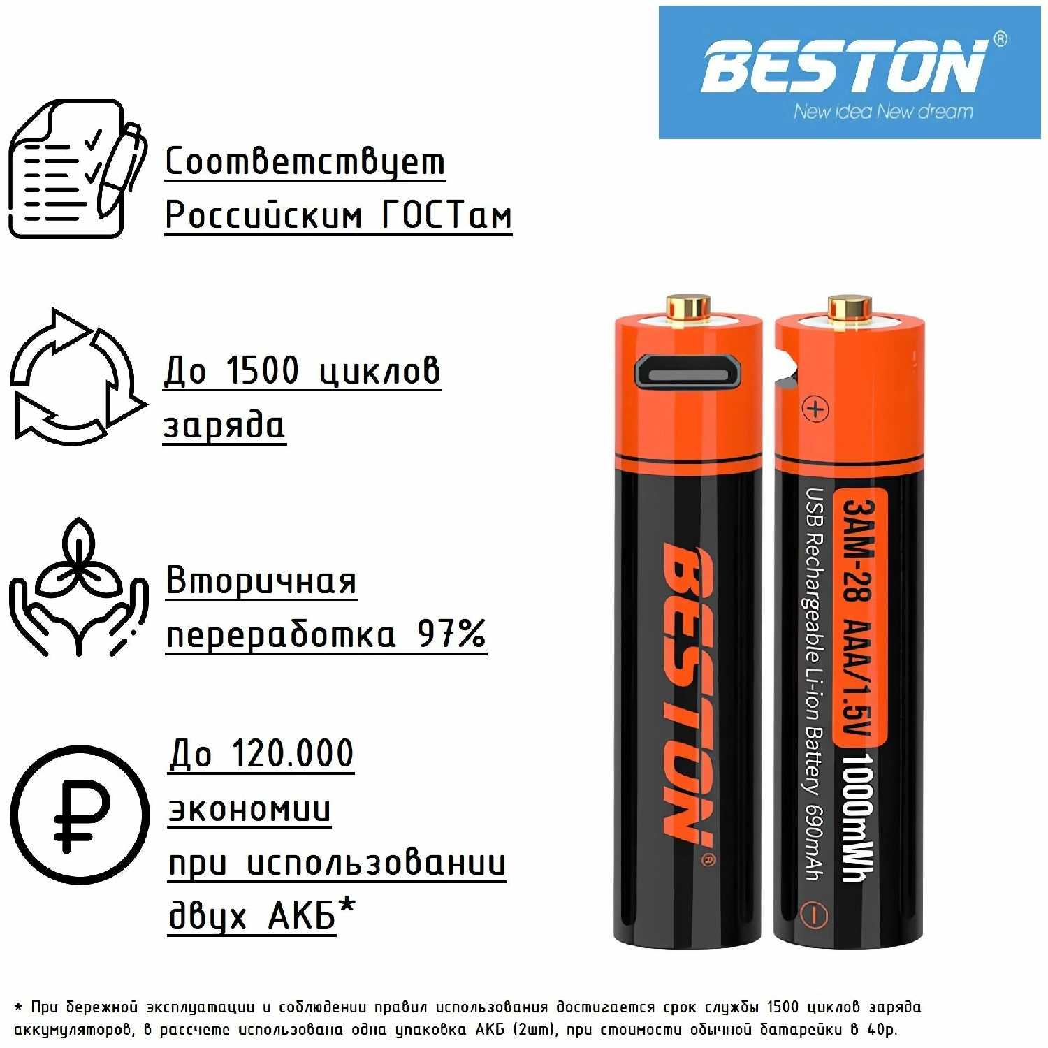 19 отзывов пользователей o BESTON AAA Li-Ion (1000 mWh)