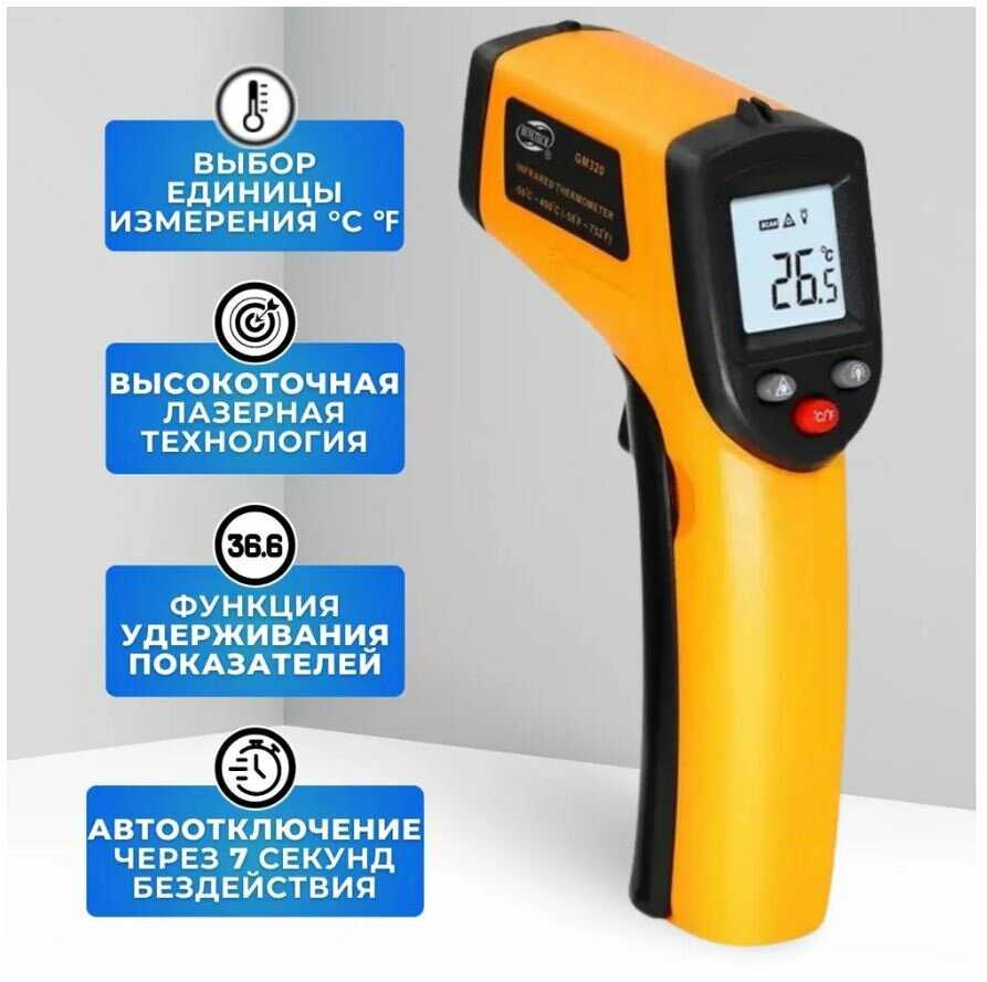 | Функции и особенности : | автоматическое отключение, звуковая индикация, измерение высоких температур, лазерный прицел, световая индикация, функция фиксации значений |