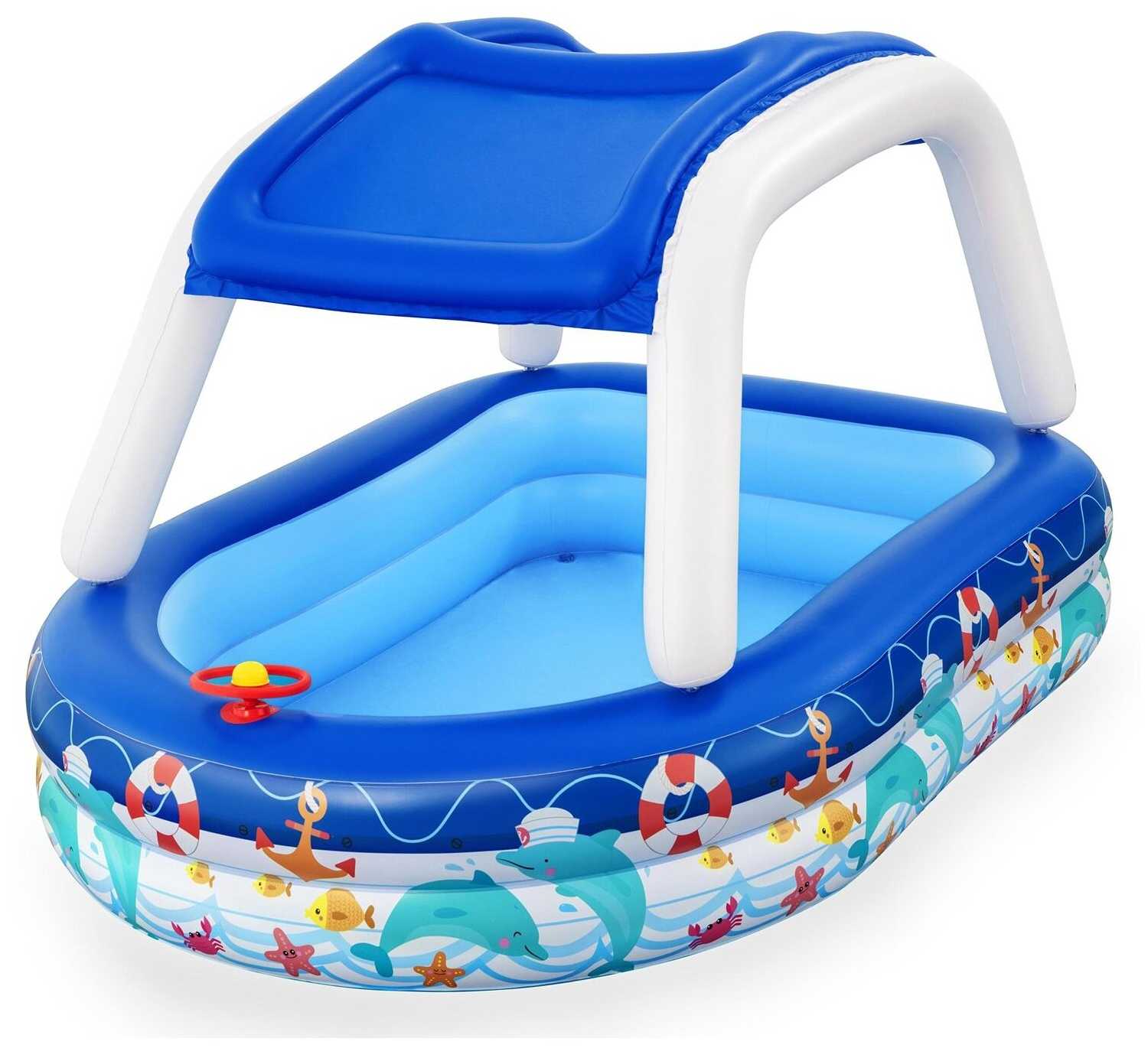 - + Размер, наличие крыши, можно скрыться от палящего солнца. Достаточно глубокий для взрослого, можно расслабиться и отдохнуть в знойный день. Нет химического запаха