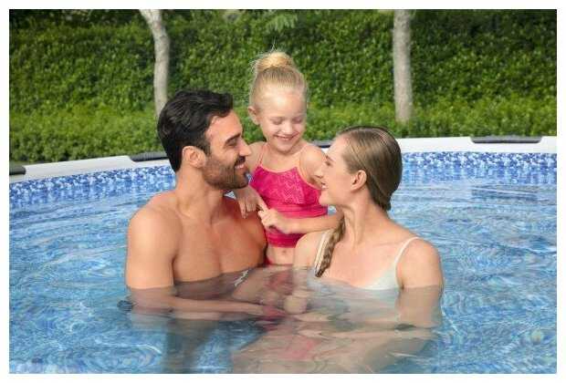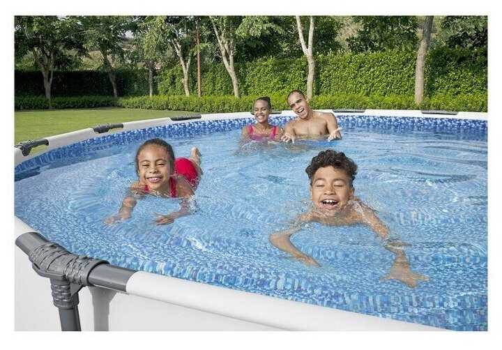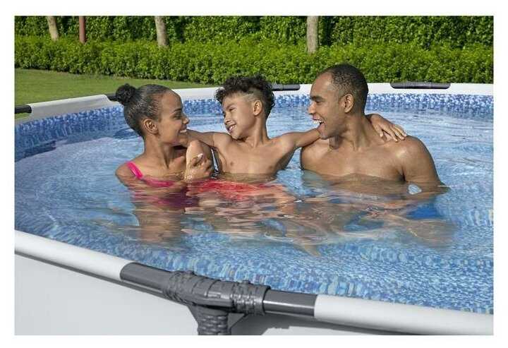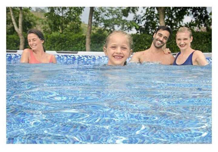 - + Размер отличный самое то прогревается отлично вода до конца сентября была +23+28градусов ,при правильном уходе вода тоже кристально чистая была все лето,бассейн очень качественный вместительный мы взрослые в нем 5 и ребенок очень комфортно проводили жаркие летние дни