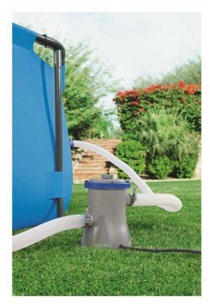 Практически единодушно пользователи считают комплектный насос-фильтр слабым и недостаточно эффективным для полноценной очистки воды. Основные жалобы: малая площадь фильтрующего элемента приводит к его очень быстрому засорению (некоторые промывали его до 2 раз в день), низкая мощность насоса уменьшает поток циркуляции воды. Многие сразу рекомендуют или планируют приобрести отдельный, более мощный песочный фильтр для комфортной эксплуатации. -