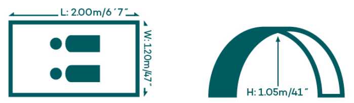 - - внутренний объем палатки значительно меньше наружного тента. по факту внутри капсула только из антимаскитной сетки для двоих примерно 200х150 по периметру внутри остается неиспользуемый пол. если наружный тент не плотно закрепить к земле, то будет поддувать. стенки внутренней камеры это только антимоскитная сетка, не сплошное полотно. если на улице ночью менее +15, то спальник нужен точно, одеяла не помогут. в палатку залетает мошка жуки и ползает по всем стенкам внутренней палатки.