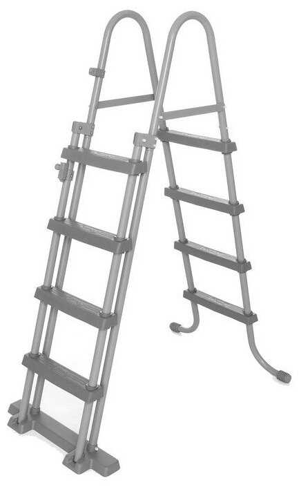 - + Все в комплекте: Бассейн, чаша, покрывало, насос, лестница. Есть скрепки-крепежки лайнера, используются при сборке. Удобная лестница.