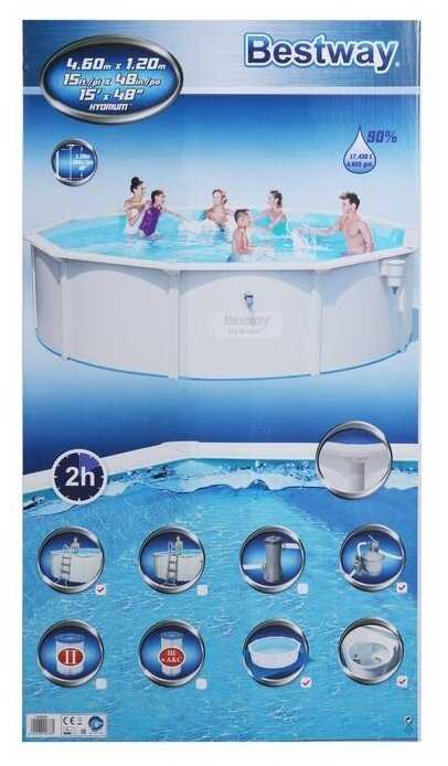 - - Не хватило пару винтов, Нет пошаговой инструкции. Заявлено, что сборку можно произвести вдвоем за пару часов. Может это к малым диаметрам бассейна относится? Мы бассейн 4,6 м собирали трое опытных инженерных работников весь день. День надо выбирать абсолютно безветренный. Надо отдельно покупать песок, но это трудно назвать недостатком, это расходники.