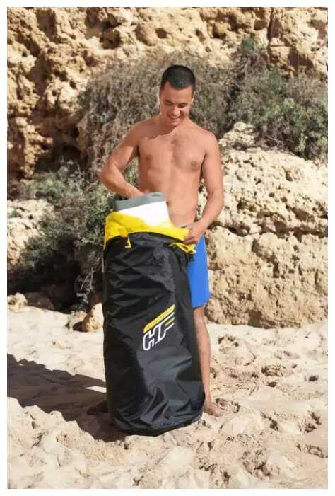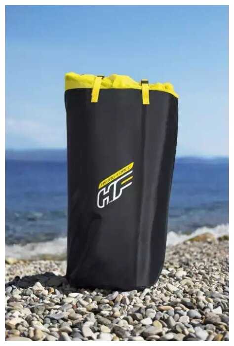 - + Отличная комплектация за эту цену. Удобно, что плавник съемный, при сворачивании не топорщится. Весомым плюсом можно отметить рюкзак, а не сумка в комплекте-очень удобно при переноске.