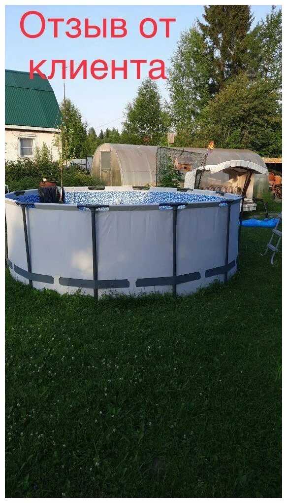- + Выбирал осознанно после 2-х 305 на 76 и 12ти лет пользования каркасниками. Прочитал заранее что в комплекте - не знаю почему все ищут подложку, в текущем году там только басик, насос, закрывашка и лестница. Чудо от закрывашек ждать не стоит - я поменял их с 2008 года не одну штуку. Сразу докупил песчаный фильтр на 3 куба в час, скиммер, пылесос (насадку и акулу ) Сделал основание из песка и урсы + 2 слоя баннера. Налил. Добавил перекиси и средства от зелени. Сделал пылесос (насадка из ашана светлая утяжеленная + более менее ворс мягкий + шланг 5 метров 38 в насадку скиммера и телескопическая ручка)