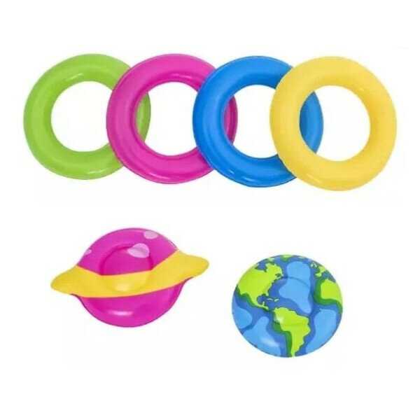 Дополнительная информация : | В комплект входят: один бассейн, одна неваляшка, один кольцеброс «Луна», один летающий диск «Земля», один летающий диск «планета», четыре кольца, ремонтная заплата. |