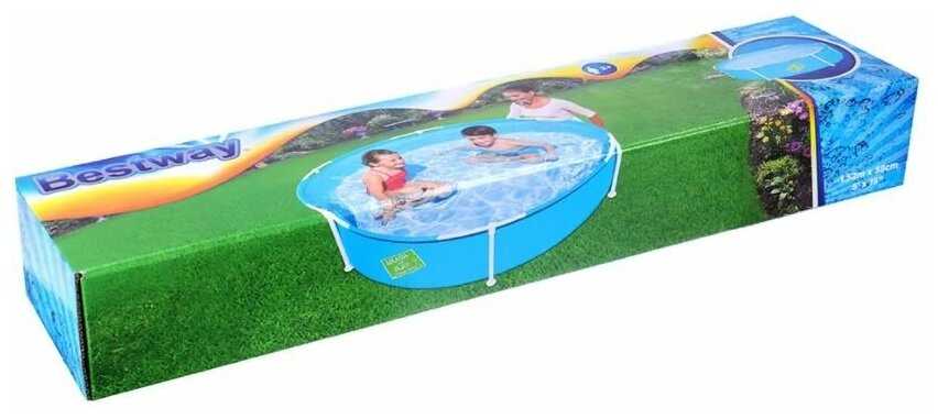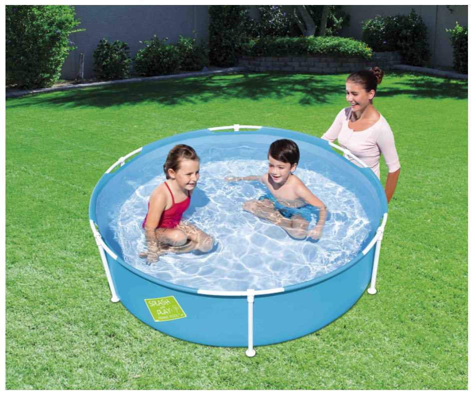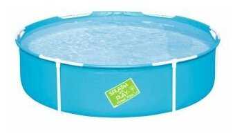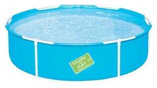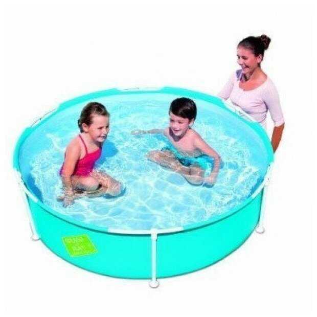 Бассейн собирается за 15–20 минут: металлические дуги вставляются в пластиковые крепления по периметру чаши. Однако фиксация ножек ненадежна — штифты не имеют жесткого замка, что требует аккуратности при эксплуатации. Детям не рекомендуется садиться на борта. -
