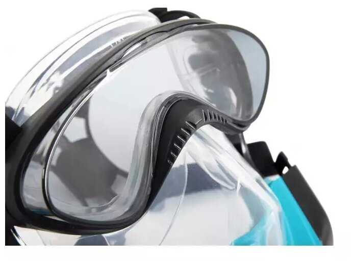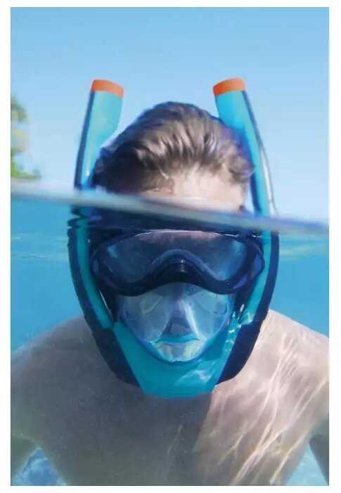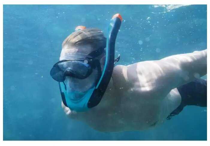 Дышать легко, иногда попадает вода (возможно перетянули или не дотянули лямки), но в отличие от других полнолицевых масок (супруге купил другую для сравнения) можно зажать нос (силиконовый корпус) и продуть. Благодаря тому, что маска заканчивается очками маску можно одевать с кепкой, чтобы не сгорела голова (после первого дня...