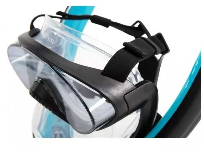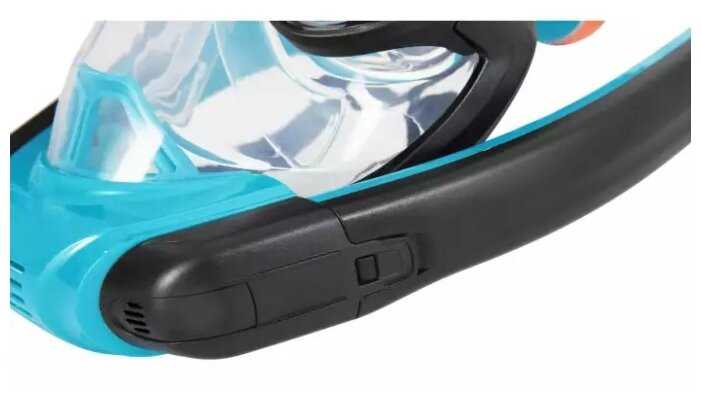 - + ребенок в восторге, встроенные клапаны перекрывают дыхательные трубки при погружении под воду, тем самым вода в маску не заливается. На лице сидит плотно,...