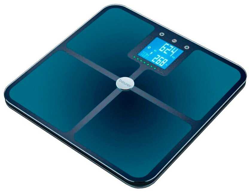 бесплатное приложение Beurer HealthManager, индикация калорий скорости активного/основного обмена веществ и ИМТ, режим беременность, индикация заряда батареи, дисплей со светящимися символами