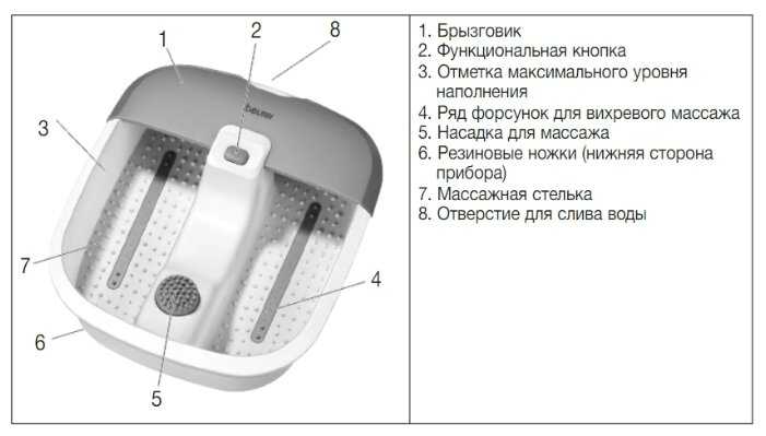 - Глубина ванночки (до щиколотки) обеспечивает полное погружение стоп.