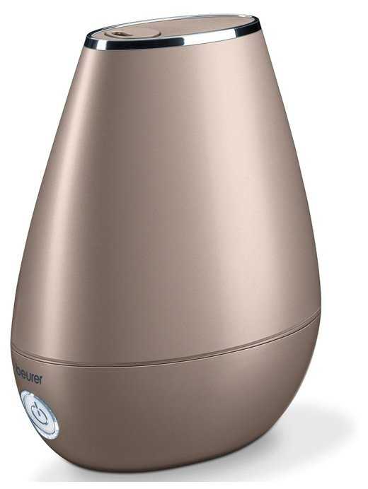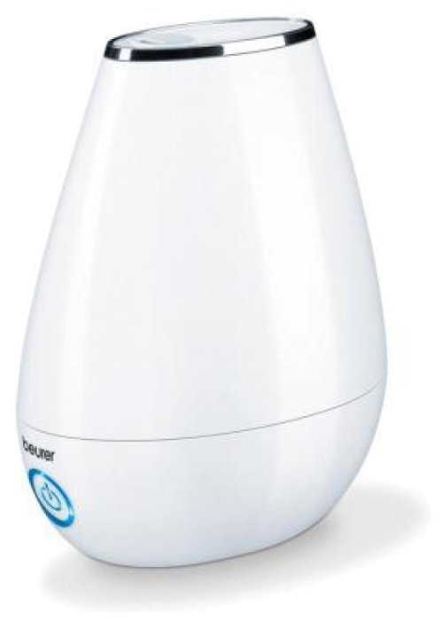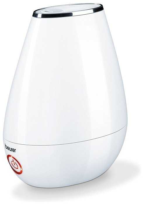 Устройство выполнено из крепкого белого пластика (в руках не "играет") и состоит из двух частей - резервуара для воды, совмещенного с каналом распылителя, и основы. В основе находится управляющая схема, кнопка-индикатор со светодиодной подсветкой, вентилятор, отсек для ароматов и ультразвуковой элемент. Резервуар вмещает 2л воды. Заливная горловина расположена снизу и закрывается пробкой-дозатором. Отверстие достаточно велико и позволяет заливать воду легко и непринужденно. В верхней части основы имеются две выемки - одна под пробку, в другой находится ультразвуковой элемент. Следует следить за тем, чтобы вода не попадала внутрь (на управляющую схему) через отверстие вентилятора. На подошве имеются четыре обрезиненные ножки. На ровной поверхности Beurer стоит устойчиво, однако не следует ставить его не неровную/мягкую поверхность - из-за особенности конструкции (верхнего расположения резервуара) есть риск опрокидывания. Страна изготовления неизвестна - на этикетке указаны только технические сведения и информация о компании. Работа Увлажнитель работает очень тихо, практически бесшумно. Иногда бывают бульки. Имеется три режима работы: 1. 200 мл/час - кнопка светится синим; 2. 150 мл/час - кнопка светится белым; 3. 150 мл/час - ночной, подсветка отключена. При отсутствии воды увлажнитель автоматически отключается; кнопка начинает гореть красным. На мой взгляд свечение неяркое и ночью мешать не будет. Вопрос вызывают два столь близких по расходу режима работы: 200 и 150 мл. При максимальном расходе полного резервуара хватает на 10 часов. От фильтрованной воды налета не замечено. Ароматизация В основе устройства имеется специальный отсек для ароматизации. Он реализован в виде выдвижной пластины, на которую наносится эфирное масло. Итог Отличный увлажнитель за свою цену. Имеются все необходимые функции, в том числе ночной режим и ароматизация. С увлажнением комнаты 16 кв. м справляется отлично. Рекомендую.