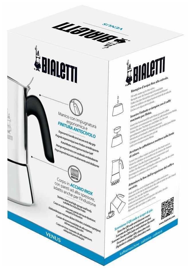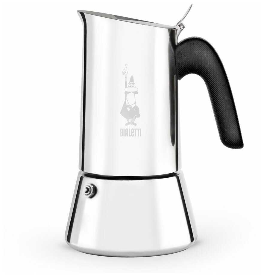Кофеварка удобная, кофе варит отменный! Красивая, прочная. Ручка не нагревается, из носика кофе не проливается. С одной варки кофе хватает либо на одну большую кружку (примерно 300 мл), либо на две поменьше. Прежде, чем купить кофеварку именно этой марки (Bialetti Venus), я смотрела в интернете отзывы, достоинства и недостатки, изучала. И, как мне кажется, не ошиблась. Купила чуть подороже, но очень хорошую, даже самую лучшую. У меня газ, также пробовала на электроплите. Варит одинаково (на индукционной не пробовала). После мытья кофеварку лучше протереть, а то на стальной поверхности остаются следы от воды. При приготовлении кофе лучше не использовать воду из крана, чтобы не оставалось накипи (как и в чайнике).
