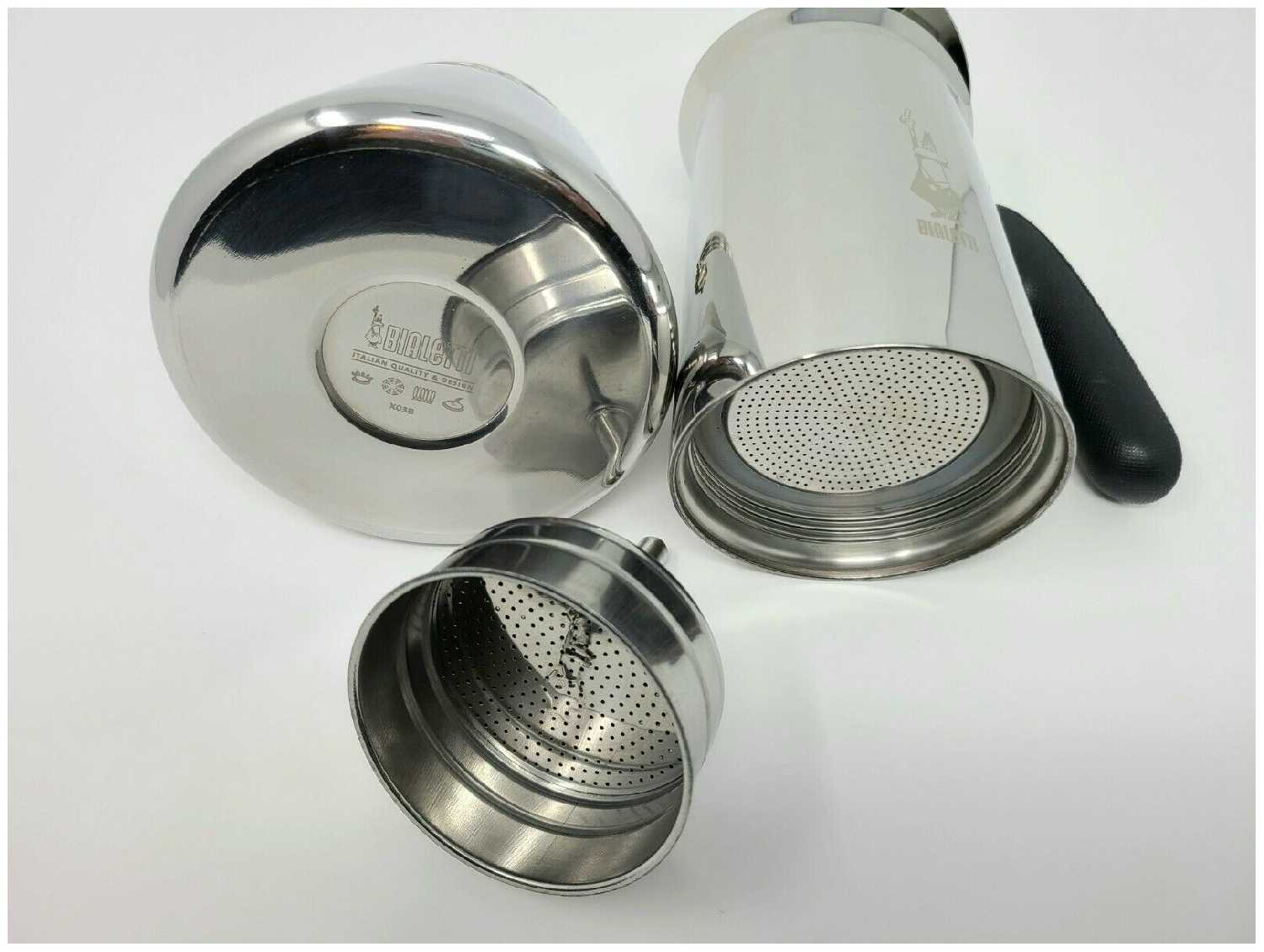 Нержавейка - никакого алюминия, нижняя колба из весьма толстого металла, все аккуратно подогнано (сетки, уплотнители), удобная и тактильно приятная ручка - - Ценник кажется высоковатым, но только поначалу