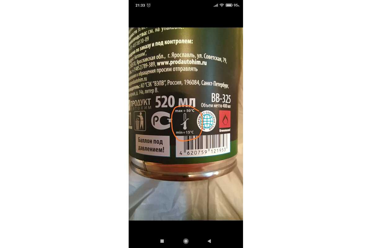Дополнительная информация : | Баллон под давлением! Применять только на открытом воздухе или в хорошо проветриваемом помещении! Предохранять от прямых солнечных лучей, ударов и температуры выше +50. Не распылять вблизи открытого огня и раскалённых предметов. Использовать по назначению. Не допускать попадания в глаза. В случае попадания в глаза - промыть водой! Не разбирать и не давать детям. Использовать препарат на открытом воздухе или в хорошо проветриваемом помещении. Хранить в крытых вентилируемых помещениях. |