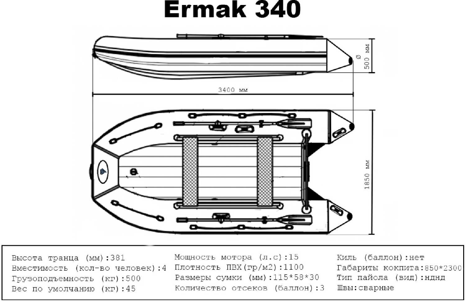 - + Лодка Ермак 340 размер вызывает уважение. Визуально имеется ощущение надежности.