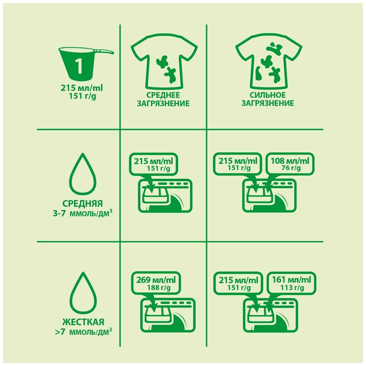 - Не подходит для быстрой стирки без предварительного перемешивания.