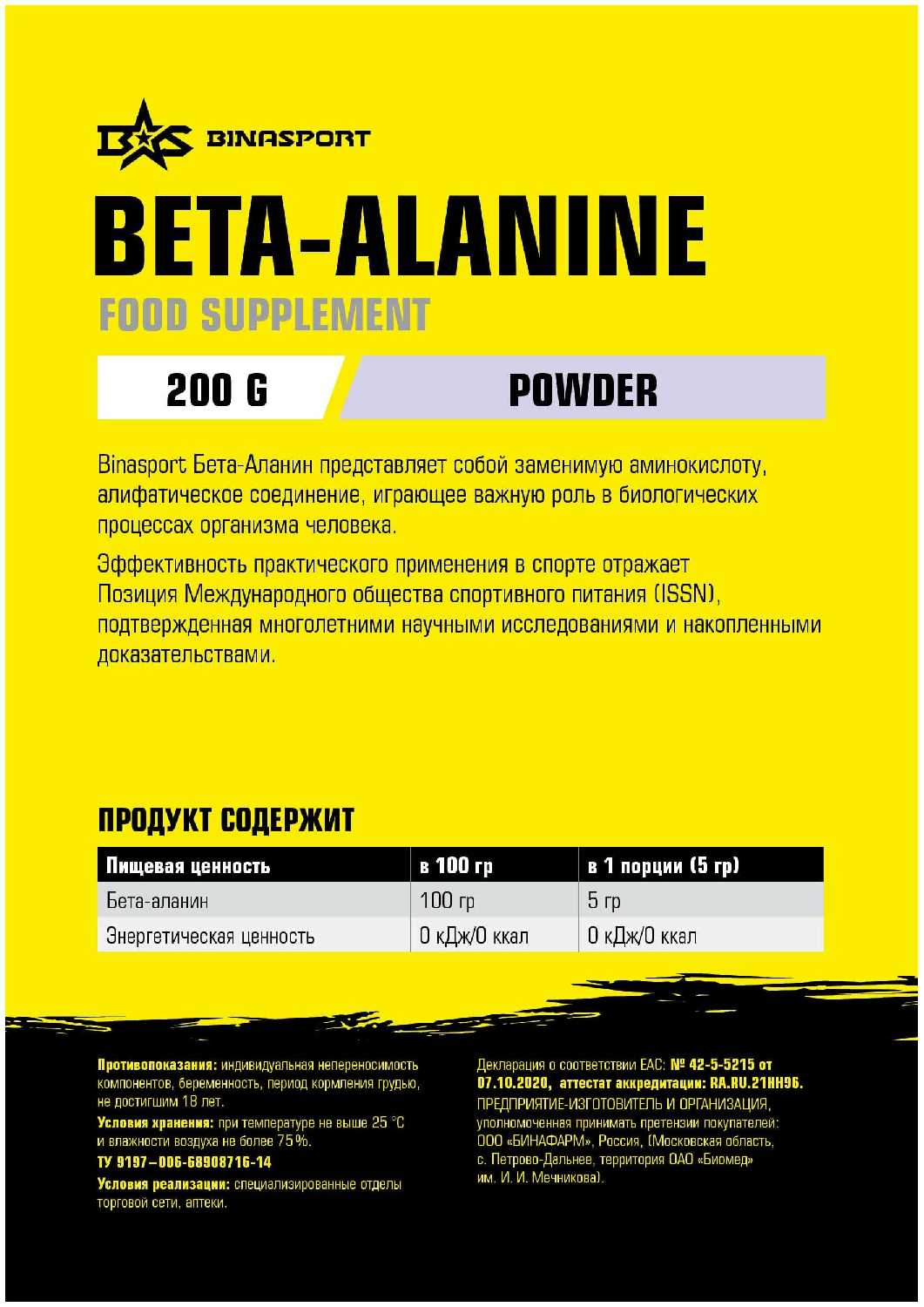 Лучшие цены сегодня на BINASPORT Beta Alanine Powder" 200 гр