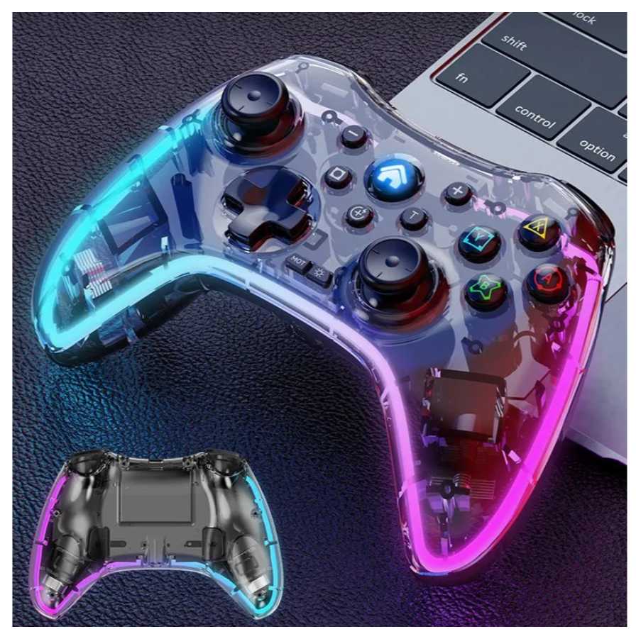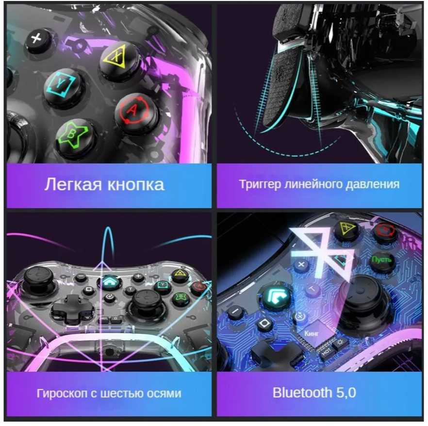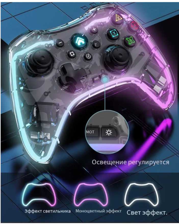- + Подключился без проблем к андроиду, красиво светится, притягивает внимание дизайном, приятная ребристая текстура рукояток, несколько режимов подсветки управляются специальной клавишей на корпусе