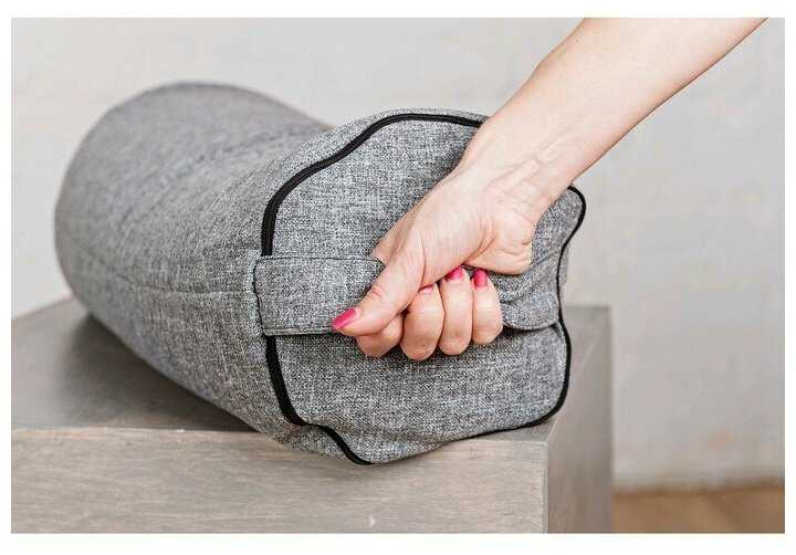 Обрадовал съёмный чехол и соответствие заявленным размерам. - - Очень тяжелое изделие, но это и определяет неподвижность валика с гречишной лузгой.