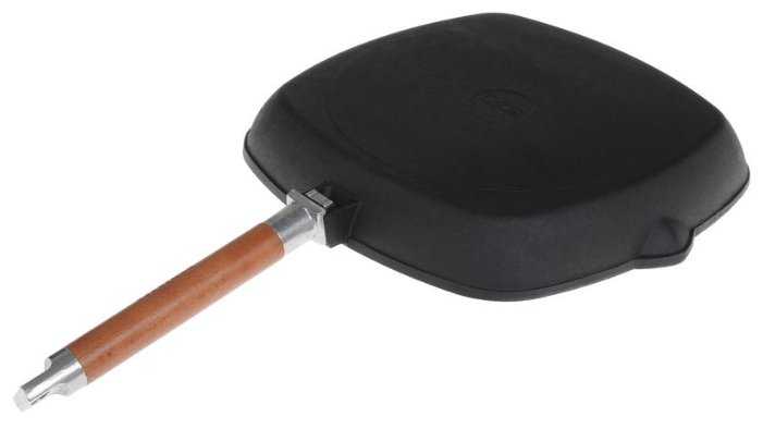 Хорошая цена для очень приличной сковороды, она достаточно тяжелая, ручка снимается. перед применением обработали как в инструкции, жарили мясо-овощи — все четко, покупкой жена довольна, давно хотела такую