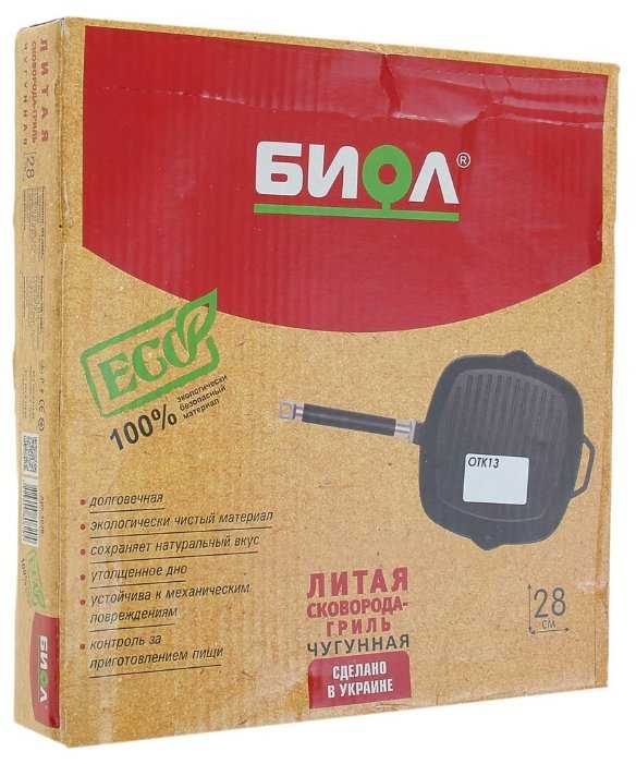 - - Очень низкое качество чугуна от Биол в последние годы. Новая сковорода-гриль прибыла с шершавым дном, которое будет царапать стеклокерамику плиты. Сам чугун плохо обработан и внутри сковороды. Дно имеет люфт и сковорода шатается на ровной поверхности. Ребра немного отличаются по высоте и размеру. Топорная работа и низкое качество.