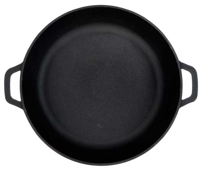 - + Покупал специально сковороду без ручек, чтоб места меньше занимала, да в духовку поставить можно было. Очень быстро и равномерно прогревается.