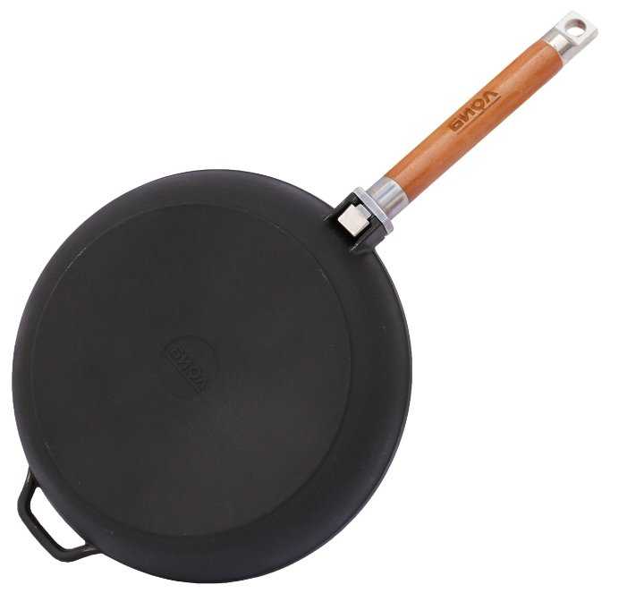 - Ручка легко снимается, что позволяет использовать сковороду в духовке или компактно хранить.