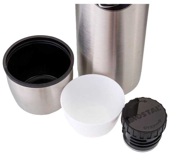 - + Удобная форма колбы. Лаконичный дизайн и надежная крышка. Плюс - две пластиковые чашки.